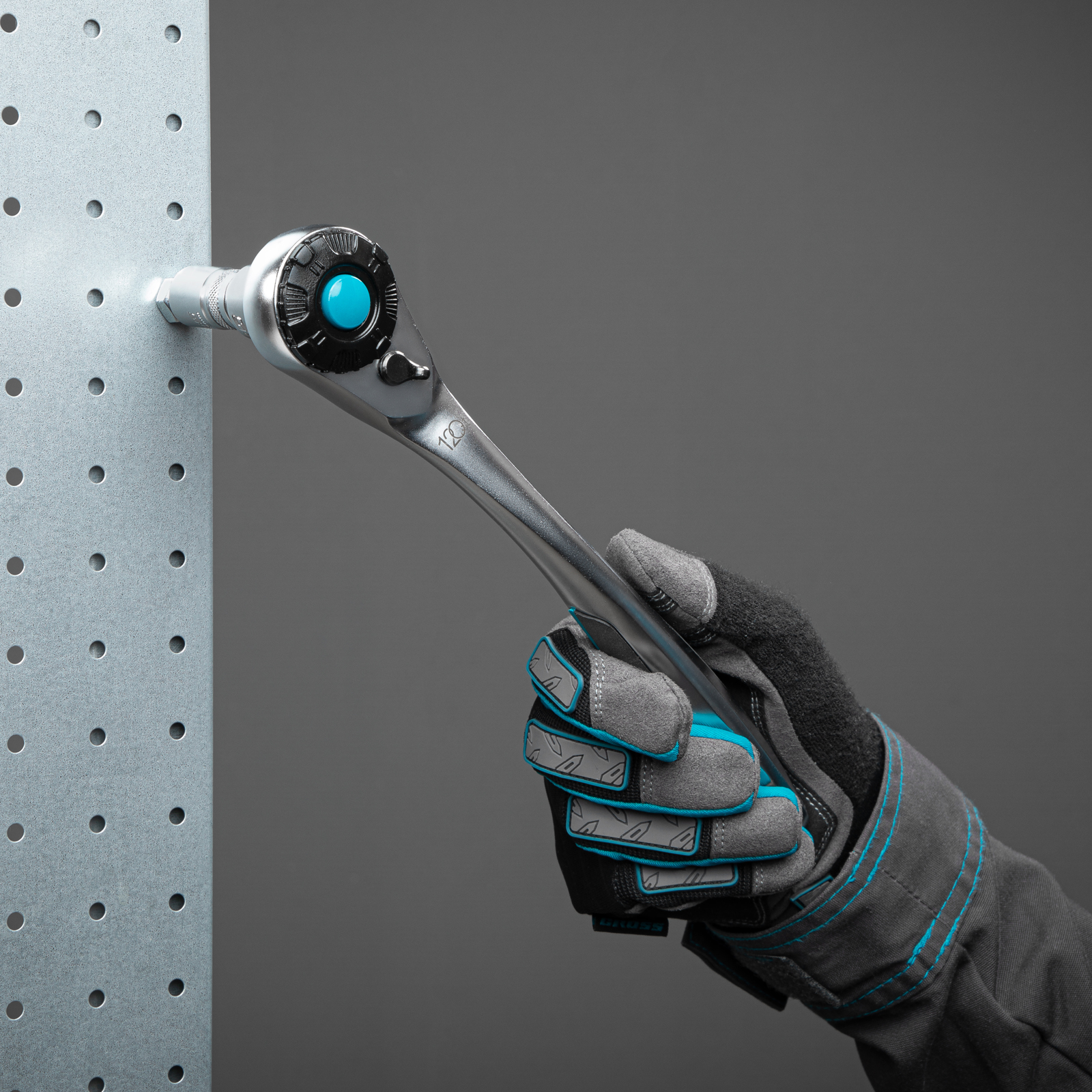 - Удобная работа в труднодоступных местах — цельнокованая трещотка со 120 зубьями позволяет вращать крепеж максимально плавно и мягко.