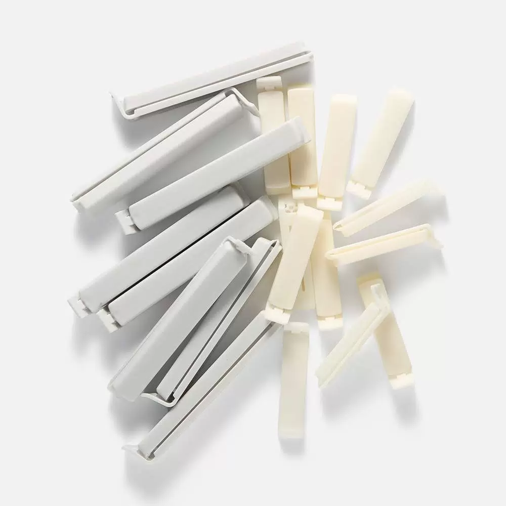 Набор зажимов Умный выбор для пакетов подходит для многократного применения. Клипсы герметично закрывают вскрытую упаковку, так продукты не заветриваются, дольше сохраняют аромат и свежесть. Легко крепить на полиэтилен, фольгу, плотную бумагу или тонкий картон. В комплекте — 20 штук .
