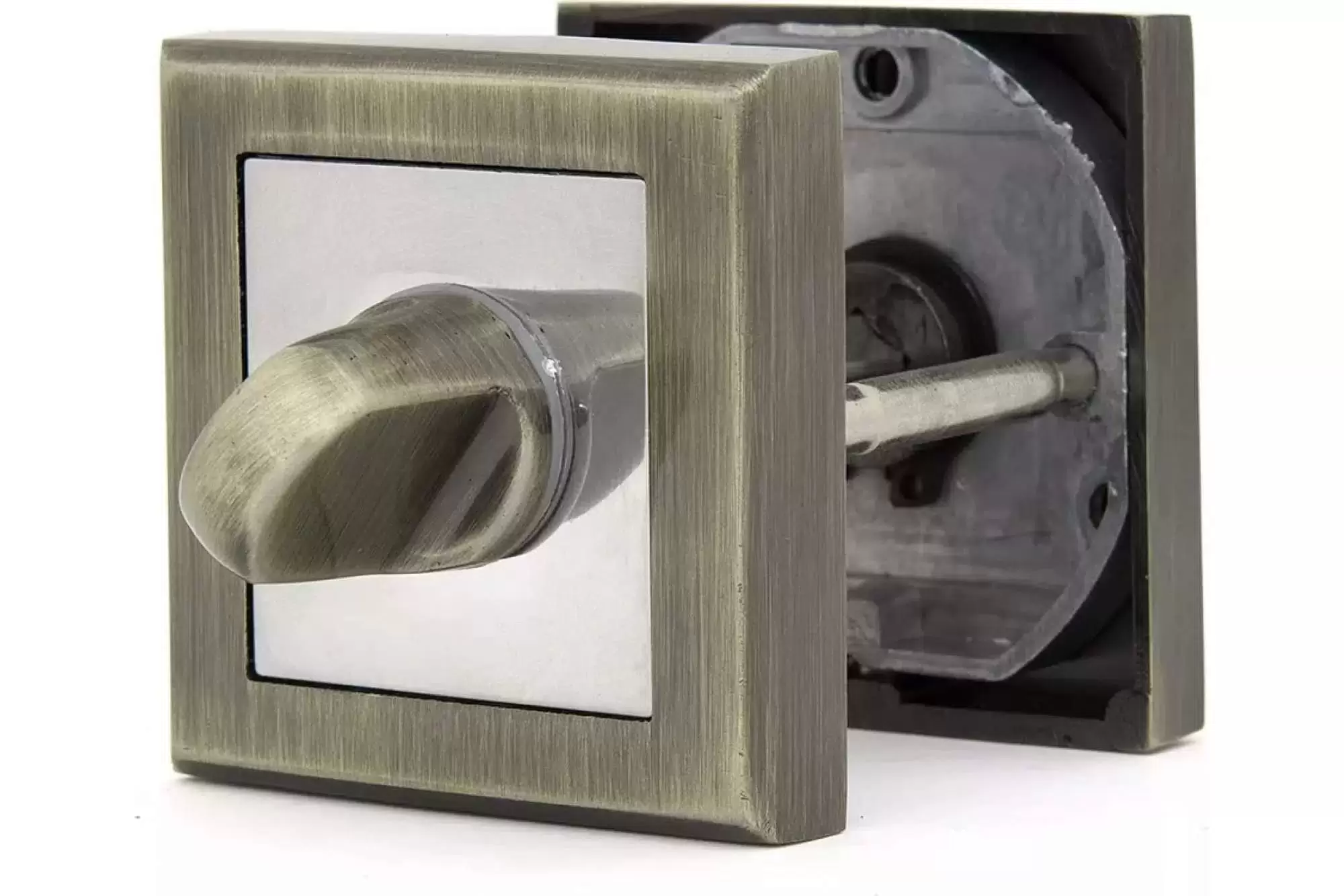 Накладка на ручку Фабрика замков A 2 BK AB СТ-00000227 позволяет запирать межкомнатную дверь изнутри. Подходит для ванной, туалета или общего санузла. На внешней накладке оставлен паз, чтобы в аварийных ситуациях можно было монетой отпереть дверь снаружи.