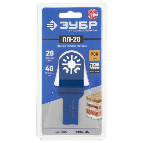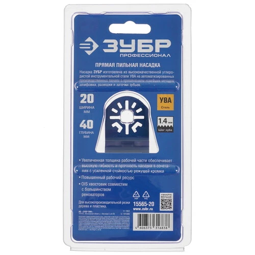 Насадка для реноватора/мфи ЗУБР 15565-20 – погружное полотно, предназначенное для пиления пластика и древесины. Ширина обработки равна 20 мм, а глубина врезания может достигать 40 мм. Материал изготовления инструмента – высококачественная среднеуглеродистая сталь. Насадка порадует вас высокой износостойкостью.