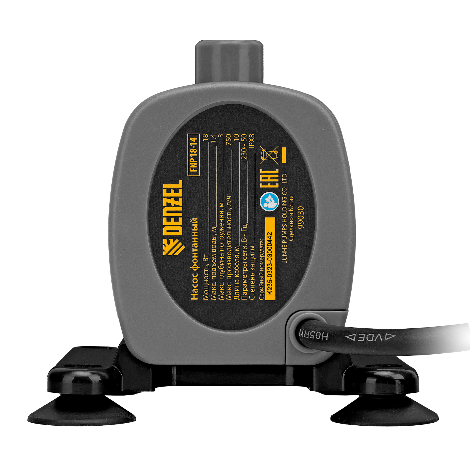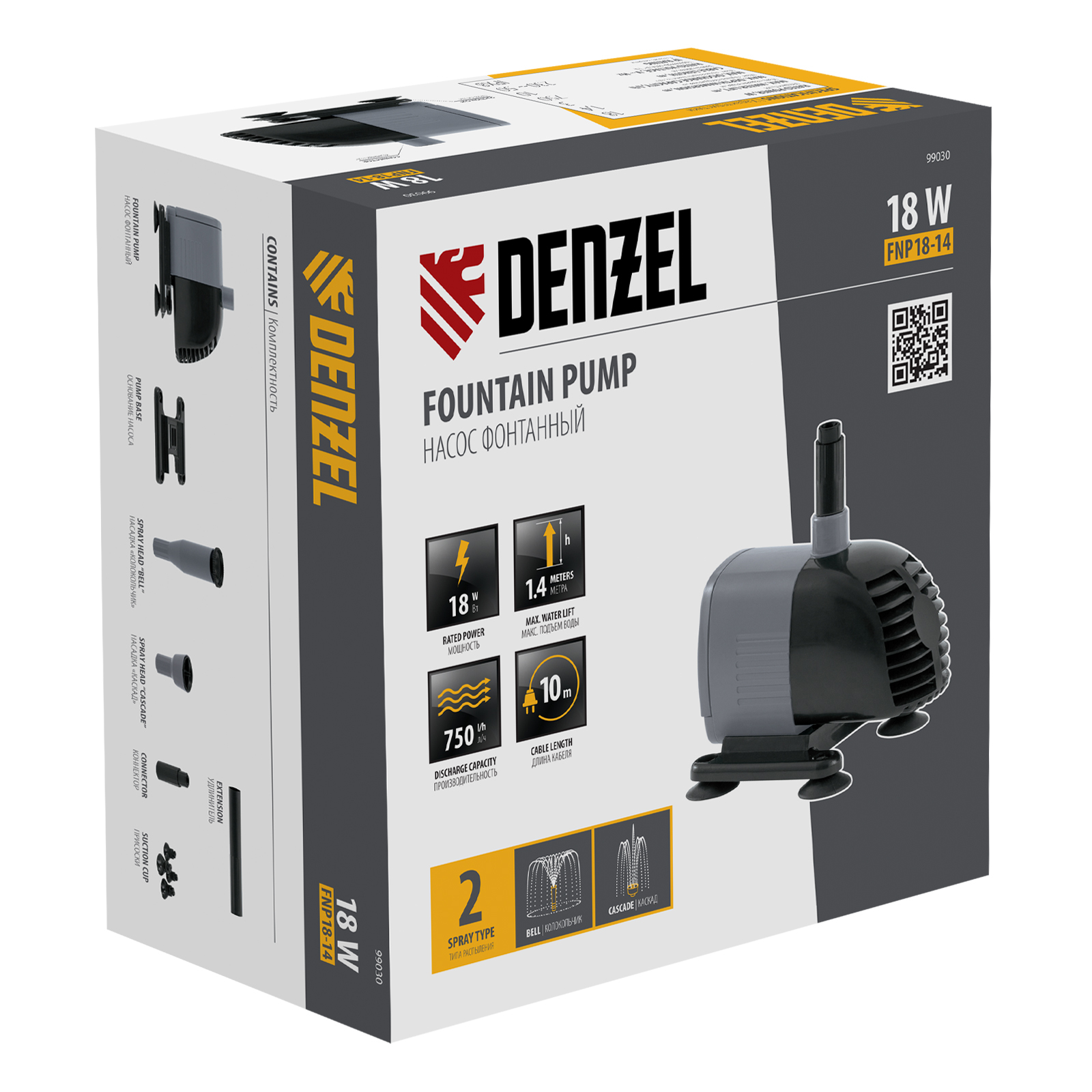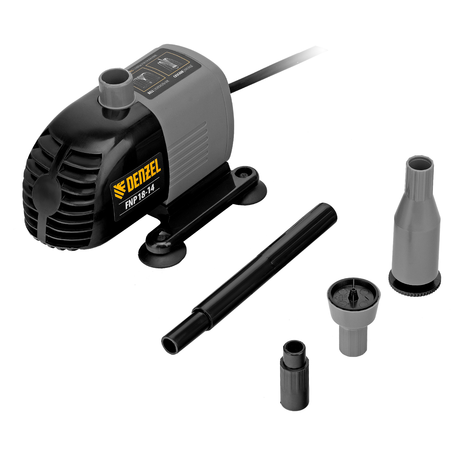 Фонтанный насос Denzel FNP18-14 99030 мощностью 18 Вт, с насадками колокольчик/каскад, перекачивает 750 л воды в час и обеспечивает максимальную высоту подъема 1,4 м. Позволяет создать декоративный фонтан, украсив водоем и оживив ландшафт дачного участка. Установив одну из двух входящих в комплект насадок, можно получить наиболее подходящий тип струи: в виде колокольчика или каскада.