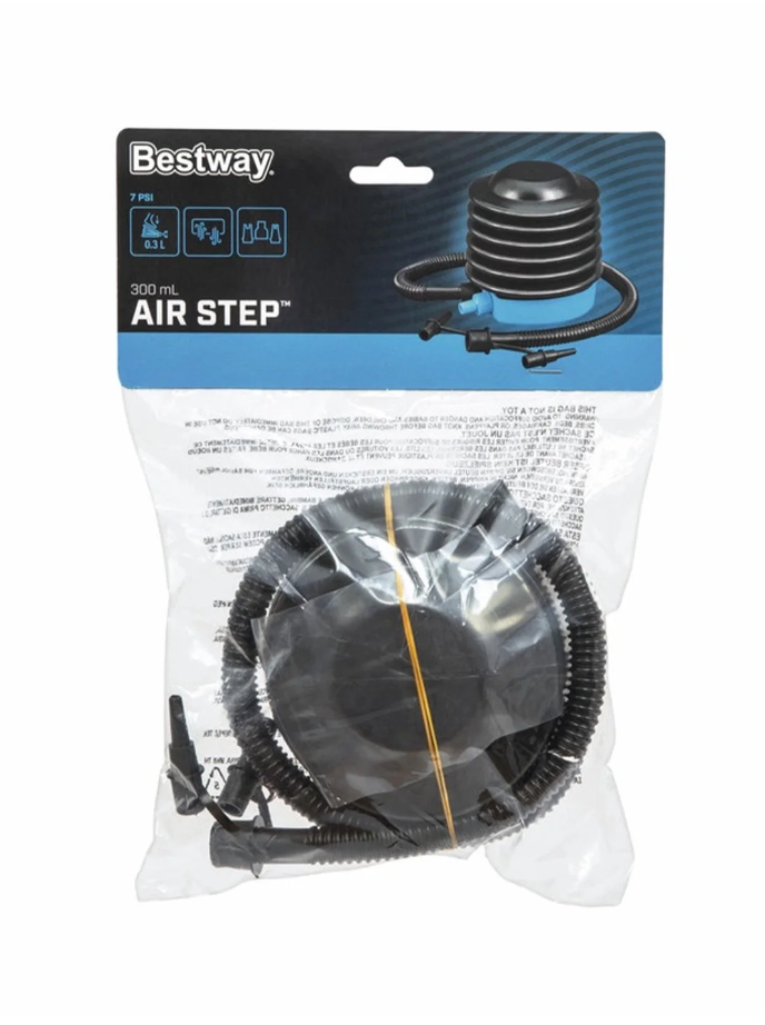 Универсальный ножной насос Bestway. С помощью данного насоса можно легко накачать небольшие и среднего размера надувные изделия, такие как: игрушки, мячи, матрасы и т.п. В комплекте с насосом идет гибкий шланг и 3 насадки. Легко переключается с надувания на сдувание.