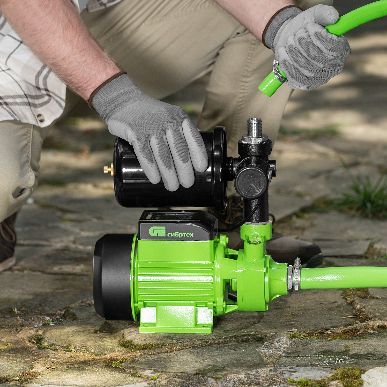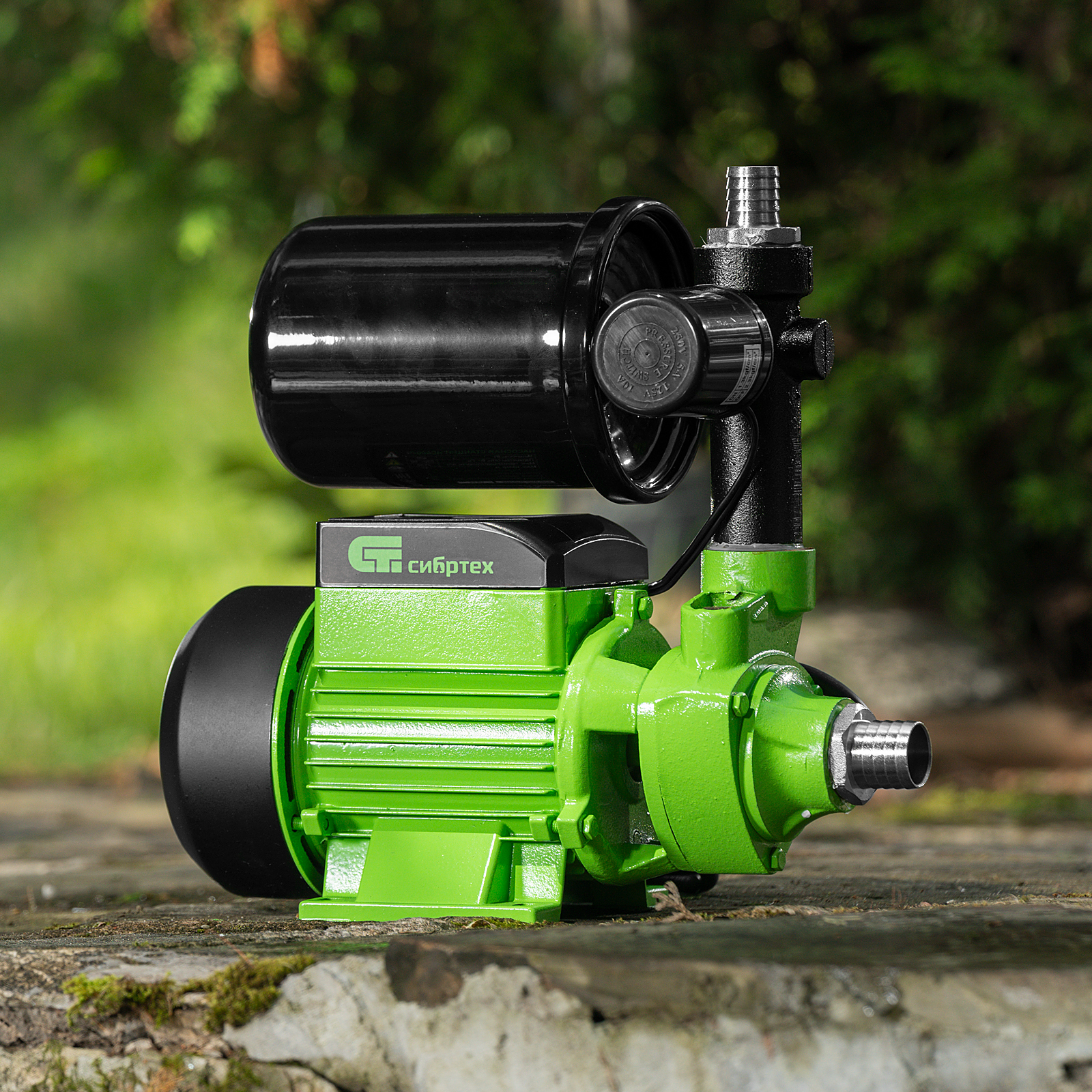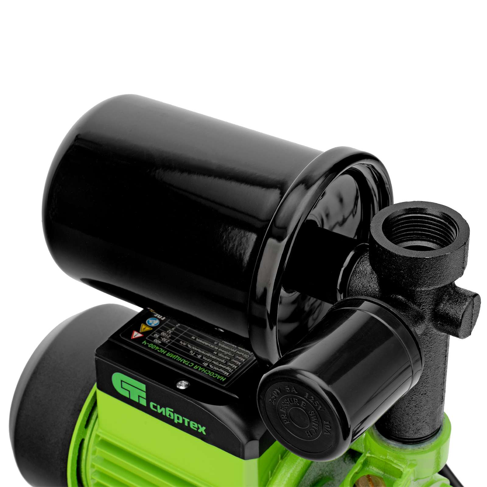Насосная станция Сибртех НС400-Ч 97246 мощностью 400 Вт, с ресивером на 2 л, обеспечивает напор до 32 м и производительность до 2100 л/ч. Предназначена для бесперебойной подачи чистой воды с глубины до 7 м, позволяет организовать водоснабжение на дачном участке. Насосная станция поддерживает стабильное давление в напорной магистрали и оптимальна для создания системы полива.