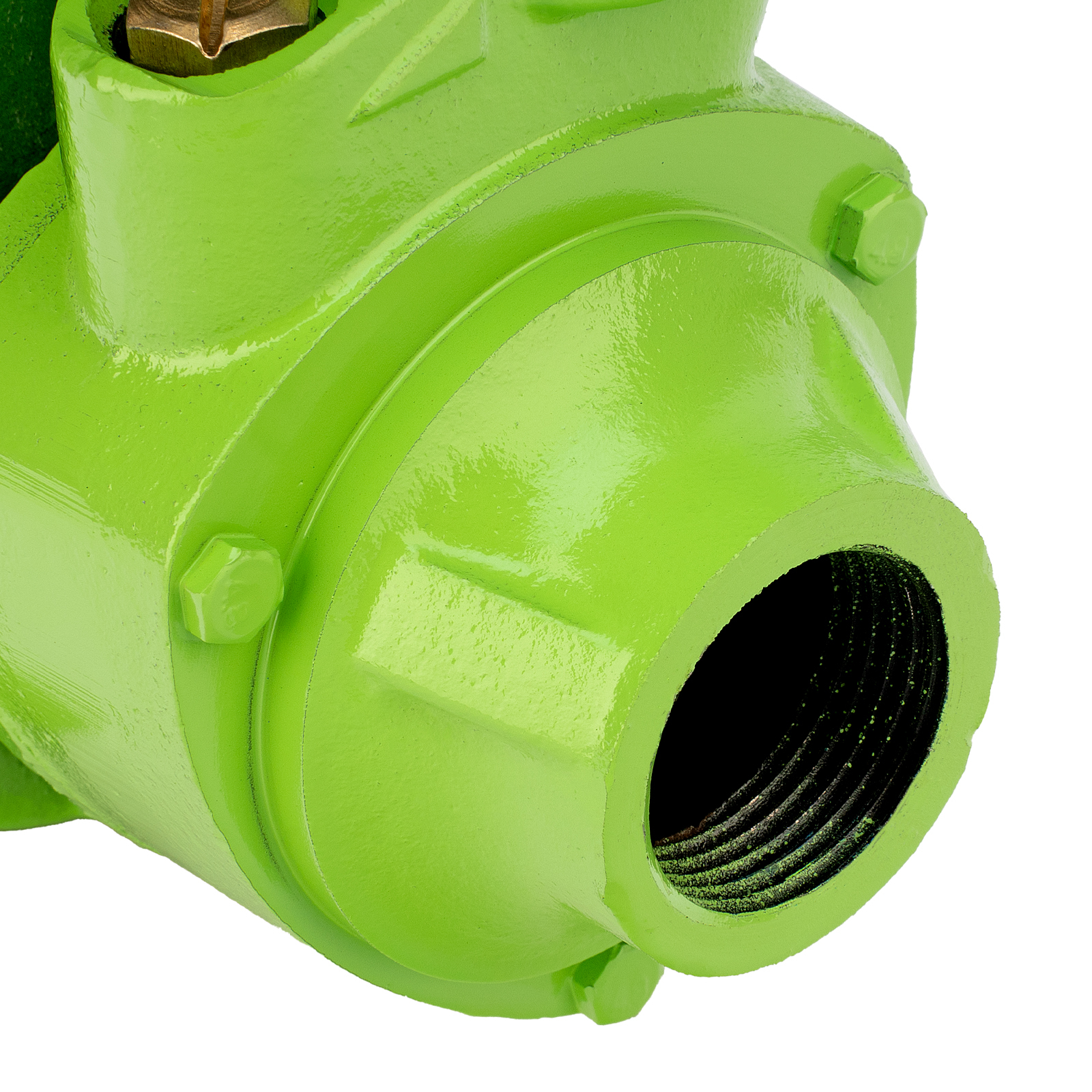 - Долговечность — чугунный корпус защищает насосную часть от повреждений, рабочее колесо из латуни устойчиво к образованию коррозии.