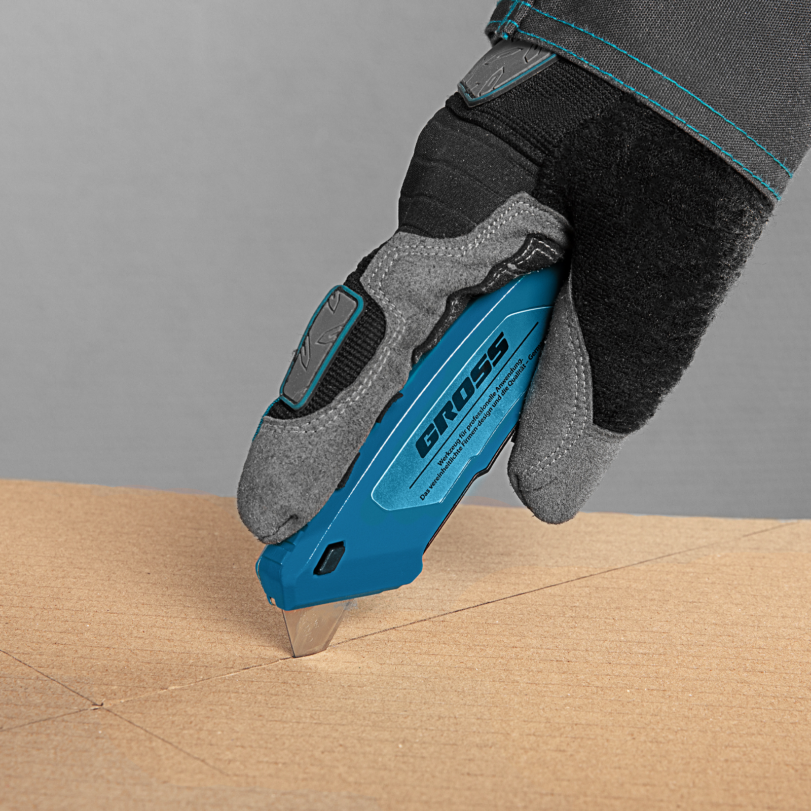 Нож Gross 78899 из стали SK-5, длиной 130 мм, с алюминиевым корпусом, выдвижным трапециевидным лезвием шириной 18 мм, клипсой для ремня и 4 лезвиями, — профессиональный инструмент для разрезания картона, линолеума, обоев, кожи и других мягких материалов. Благодаря алюминиевому корпусу он отличается повышенной прочностью и коррозионной стойкостью, выдерживает длительное и частое использование. Нож будет полезен при проведении ремонтных и отделочных работ, подойдет и для бытового использования.
