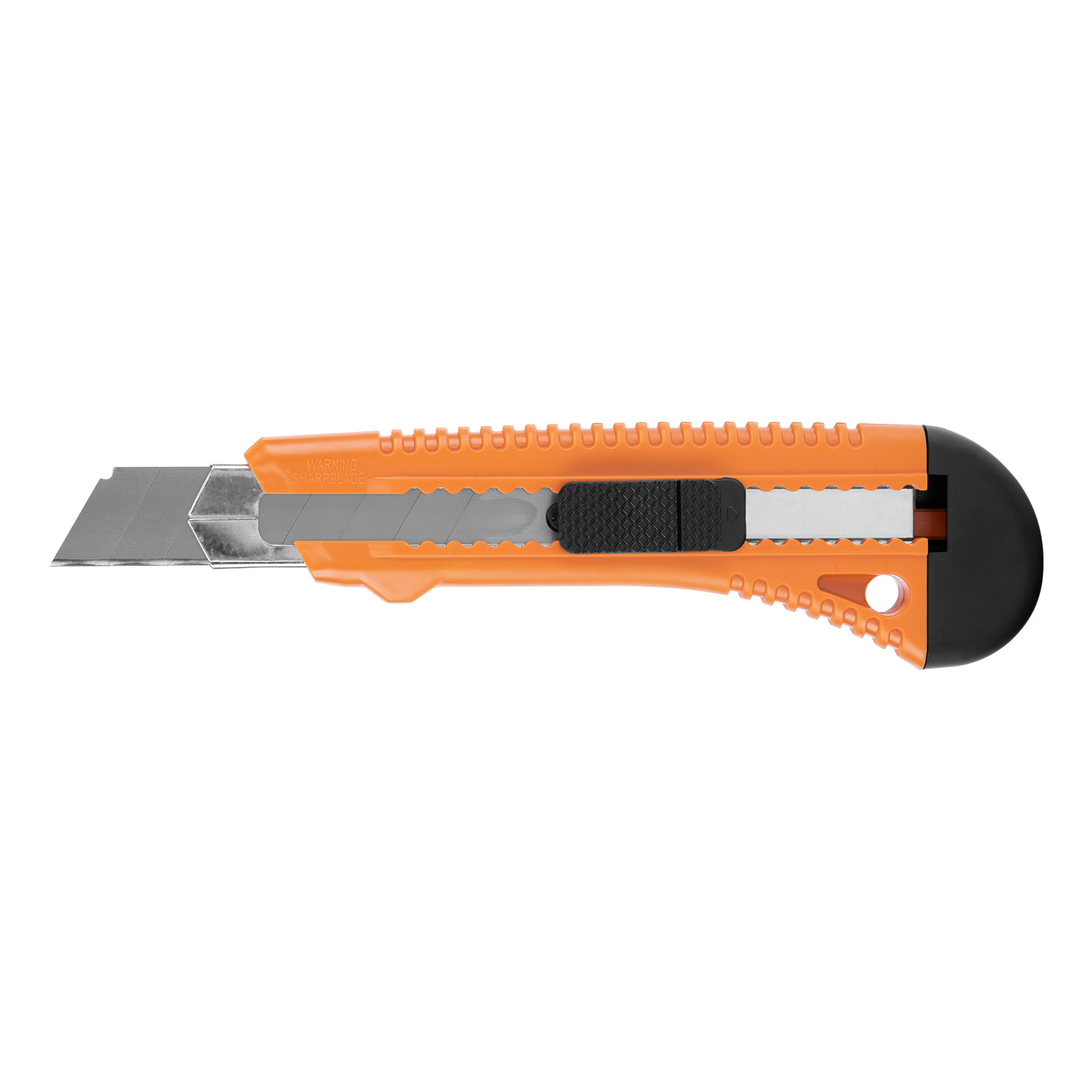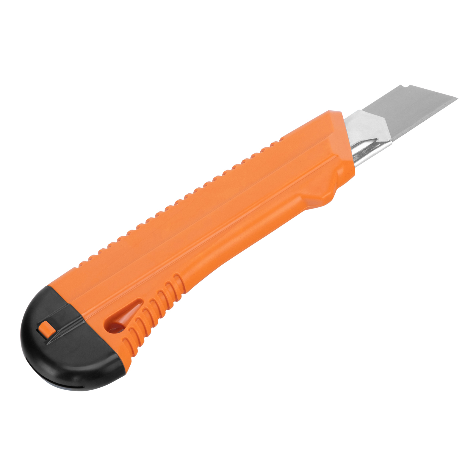 Нож Sparta 78973 с выдвижным лезвием шириной 18 мм и металлической направляющей рассчитан на выполнение мелких ремонтных и монтажных работ, а также для рукоделия и бытового использования. Он режет тонкие материалы, например, бумагу или картон. Нож не нужно затачивать.