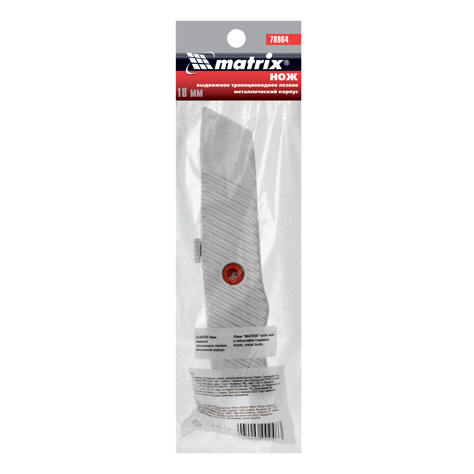 Нож Matrix 78964 в металлическом корпусе, с выдвижным трапециевидным лезвием, применяется при резке бумаги, картона, кожи, а также для раскройки линолеума или обоев. Инструмент успешно справляется с этой работой благодаря стальному лезвию шириной 19 мм. Используется в профессиональной сфере и в быту.