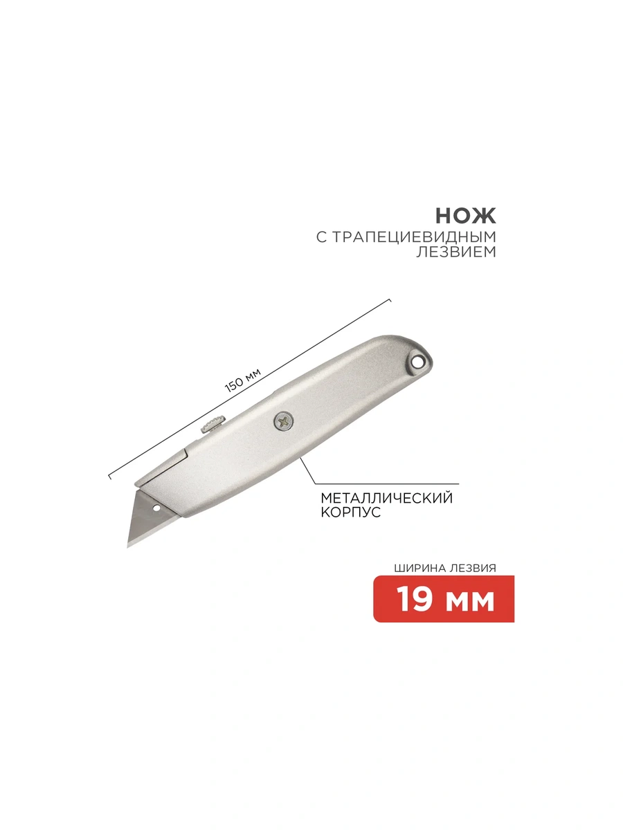 Нож с выдвижным трапециевидным лезвием REXANT — отличный помощник для резки различных материалов: пластика, линолеума, кровельных материалов, гипсокартонных и гипсолитовых плит, бумаги, картона.