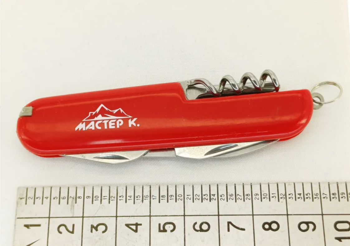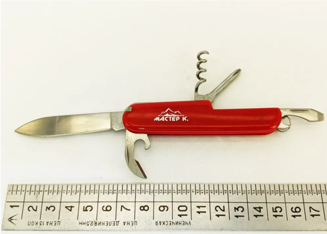 Швейцарский нож складной многофункциональный незаменимая вещь в любом походе, когда особенно ценится компактность и вес. В сложенном состоянии (25*94 мм) нож складной туристический многофункциональный займет совсем немного места в кармане одежды или рюкзака. Малый вес ( 50 гр.) не будет серьезным обременением. Туристический нож многофункциональный выполнен из нержавеющей стали. Матовая поверхность рукояти препятствует скольжению. Многофункциональный перочинный нож снабжен кольцом для крепления. Нож складной туристический многофункциональный охарактеризовать двумя словами – удобство и функциональность. Нож складной многофункциональный швейцарский станет незаменимым помощником дома и на работе, в походе и на пикнике, на рыбалке и охоте. Швейцарский походный нож поможет Вам во многих ситуациях, ведь этот перочинный нож включает в себе целых 8 инструментов: