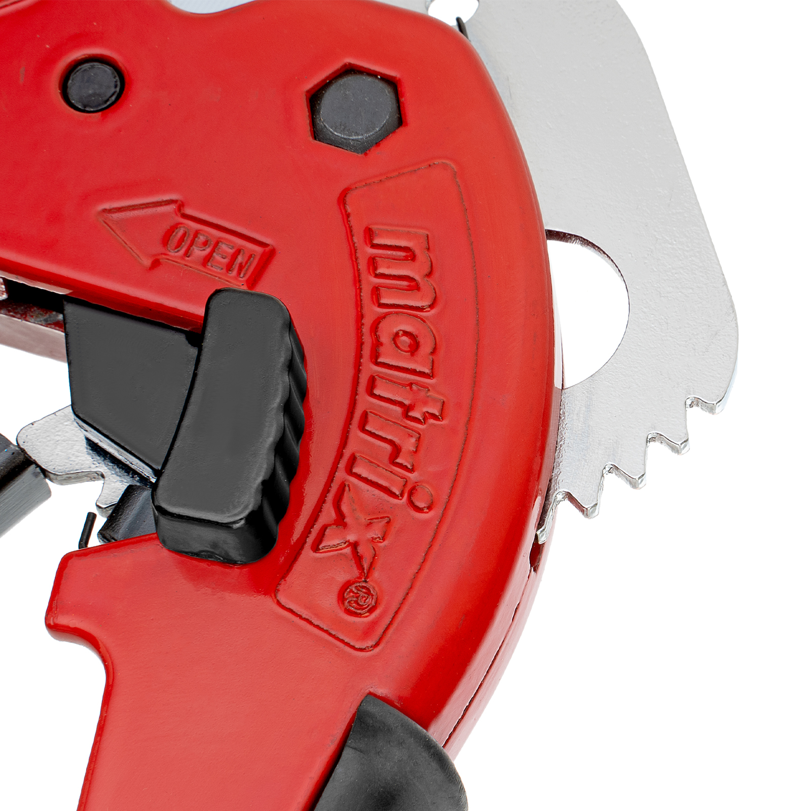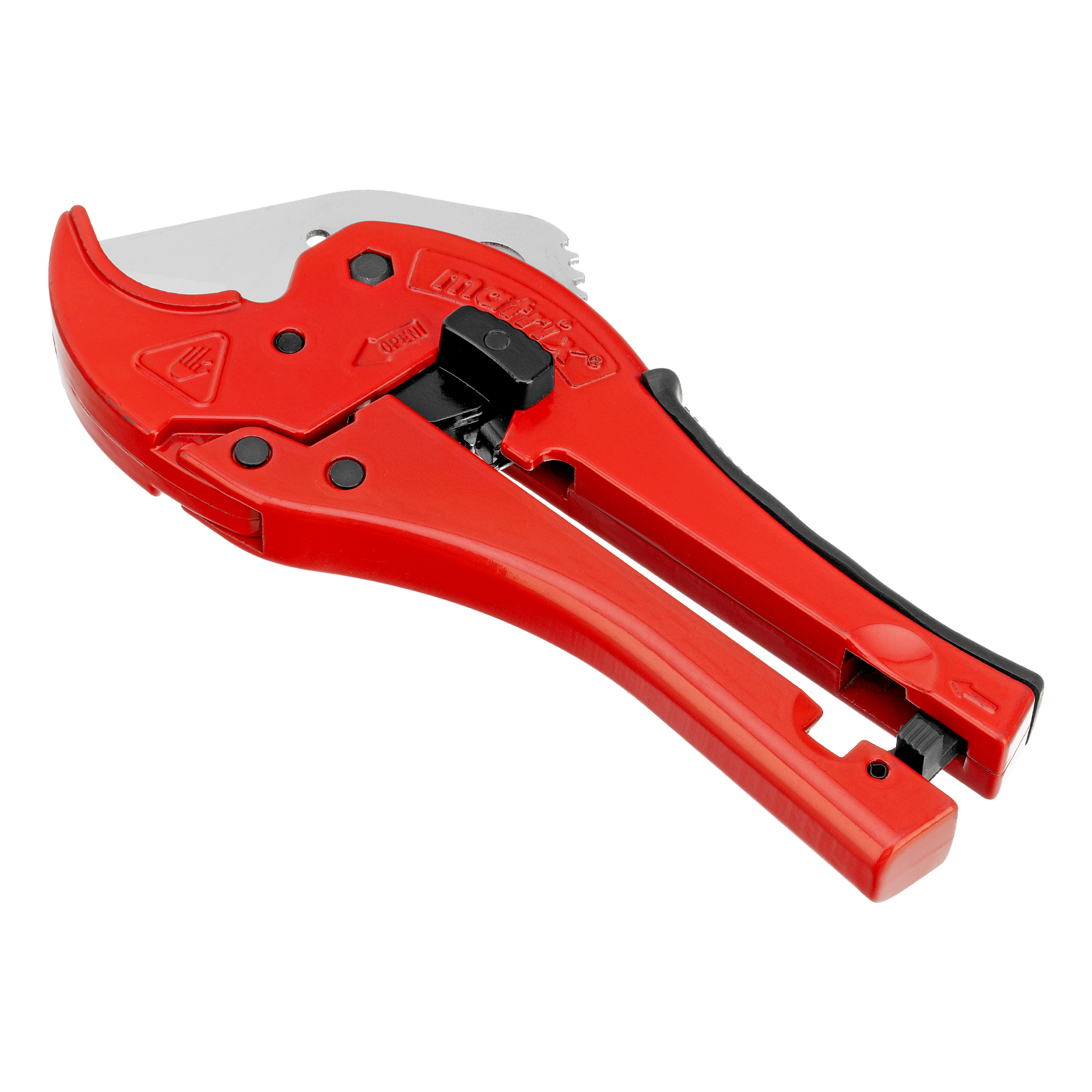 Ножницы Matrix 78412 с обрезиненной опорной рукояткой и порошковым покрытием рукояток используются для резки резиновых шлангов и изделий из ПВХ диаметром и шириной до 42 мм — труб, галтелей, плинтусов, профилей и других предметов. Трапециевидное полотно с двумя рабочими кромками облегчает выполнение работ. Ножницы пригодятся сантехникам и мастерам по отделке помещений.