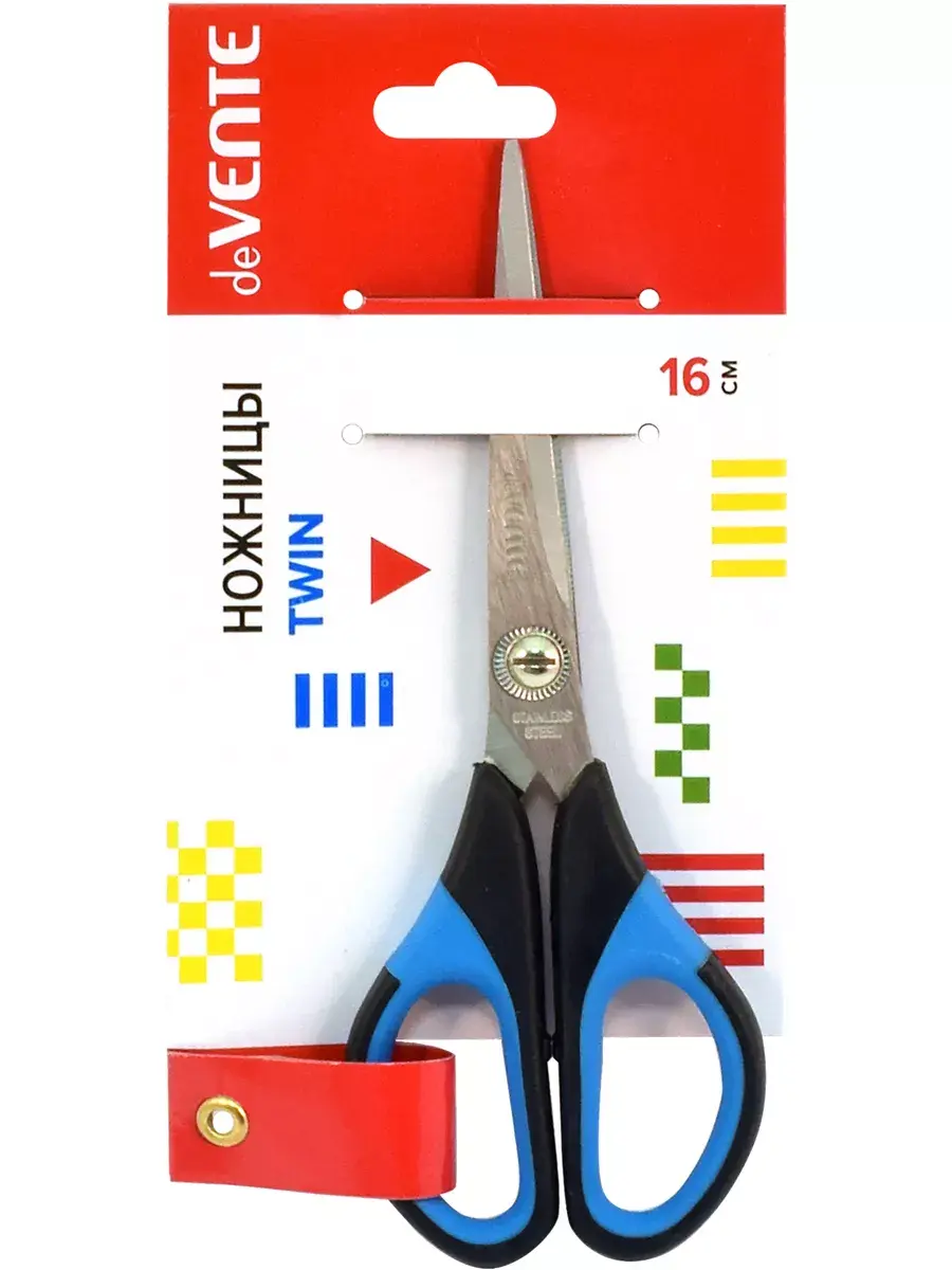 Ножницы канцелярские "deVENTE. Twin" 16 см, двухцветные прорезиненные кольца, в картонном блистере