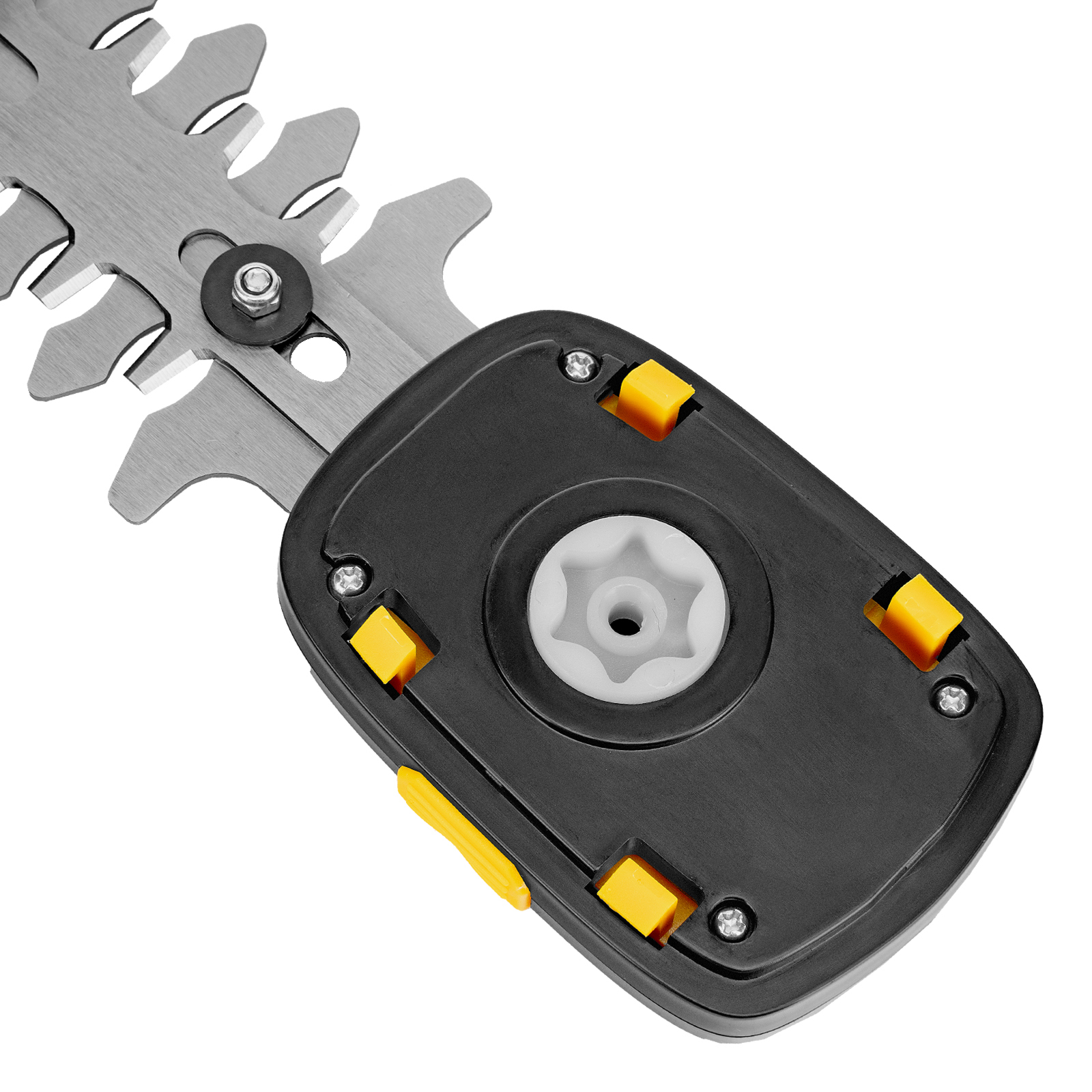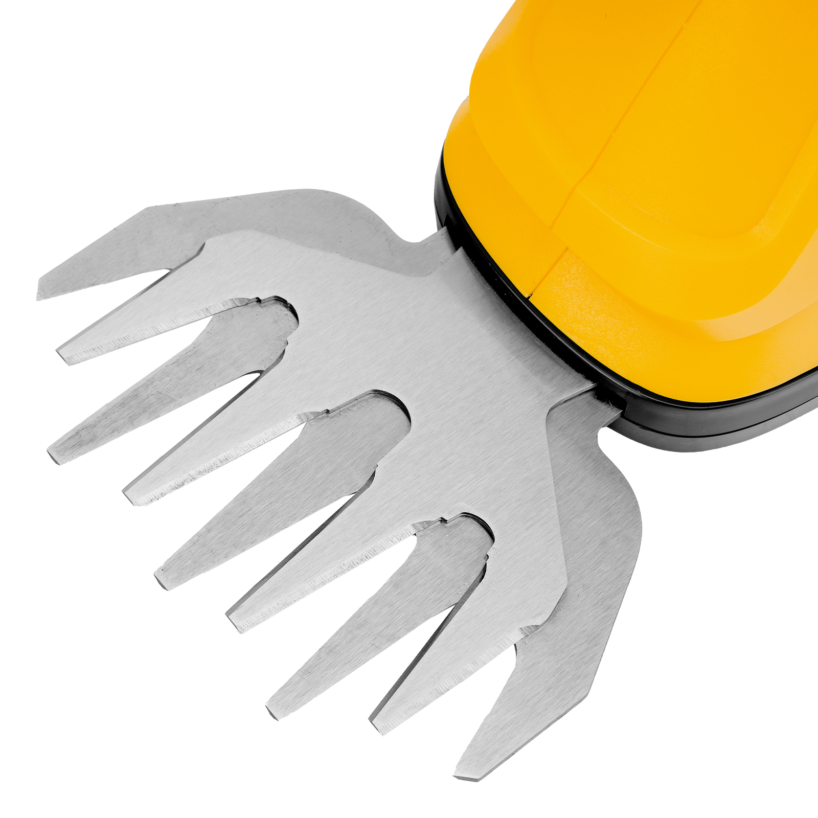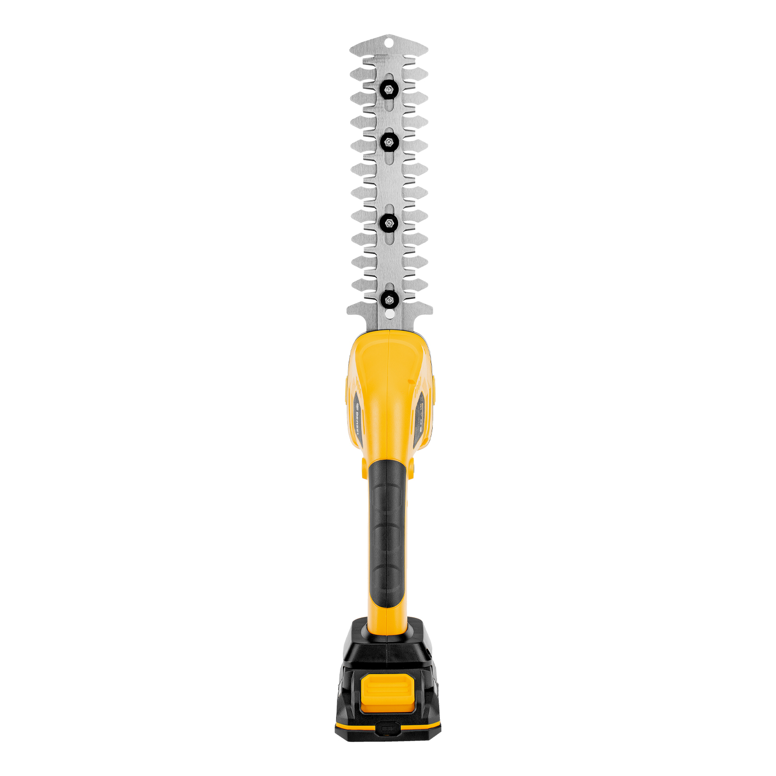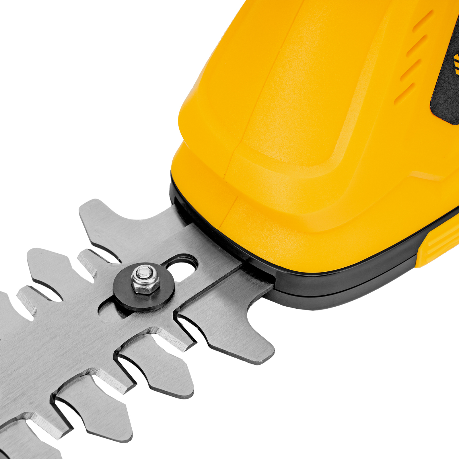 Аккумуляторные ножницы-кусторез Denzel GS-20 59432 работают от аккумулятора Li-Ion 20 В емкостью 2 А·ч. Предусмотрено 2 режима: ножниц для срезания травы и кустореза для обрезки кустарника, ухода за живой изгородью. Максимальная толщина срезаемых веток составляет 8 мм. Ширина среза в режиме ножниц составляет 100 мм, в режиме кустореза — 200 мм, что позволяет быстро и эффективно справиться с работой. Инструмент предназначен для бытового использования.