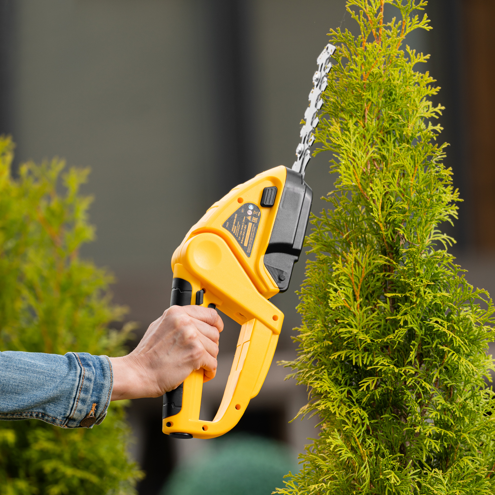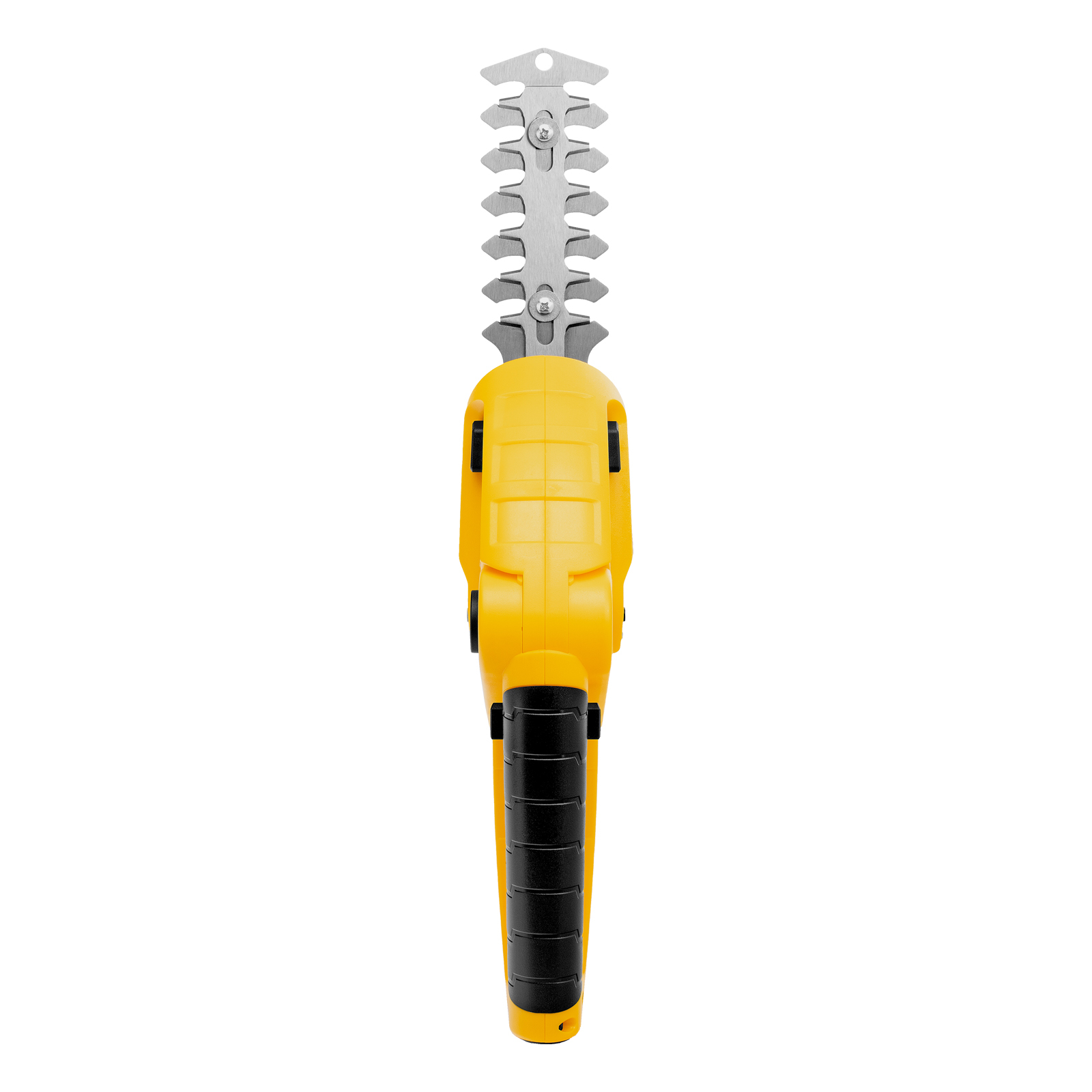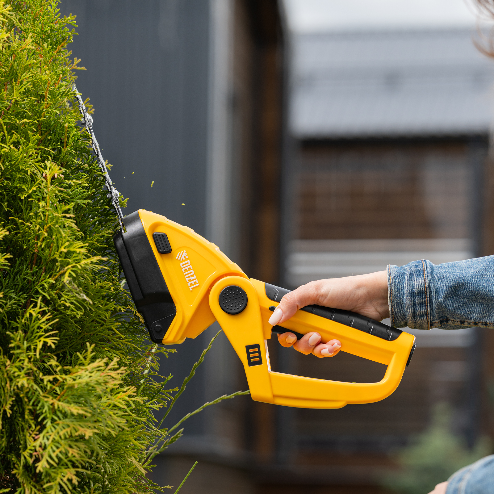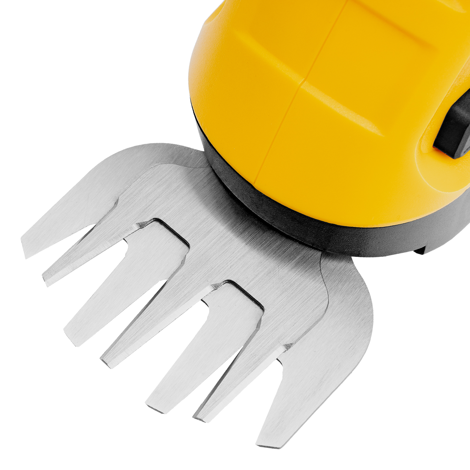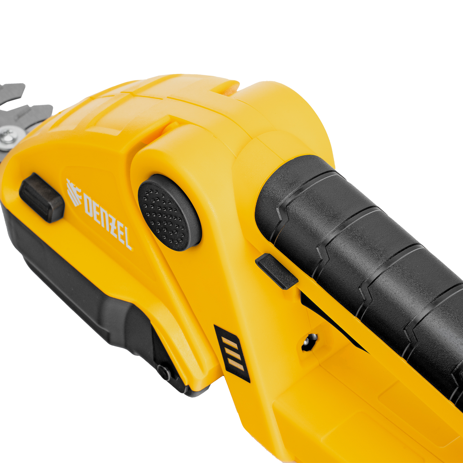 Аккумуляторные ножницы-кусторез Denzel GS-7 59428 предназначены для срезания травы, обрезки кустов и веток диаметром до 8 мм, подходят также для ухода за живой изгородью. Ширина среза в режиме ножниц составляет 80 мм, в режиме кустореза — 120 мм, что позволяет эффективно решать поставленные задачи. Инструмент работает от аккумулятора Li-Ion номинальным напряжением 7,2 В и емкостью 1,5 А·ч, не требует подключения к стационарному источнику питания и может использоваться на любом расстоянии от дома. Пригодится владельцам дачных участков.