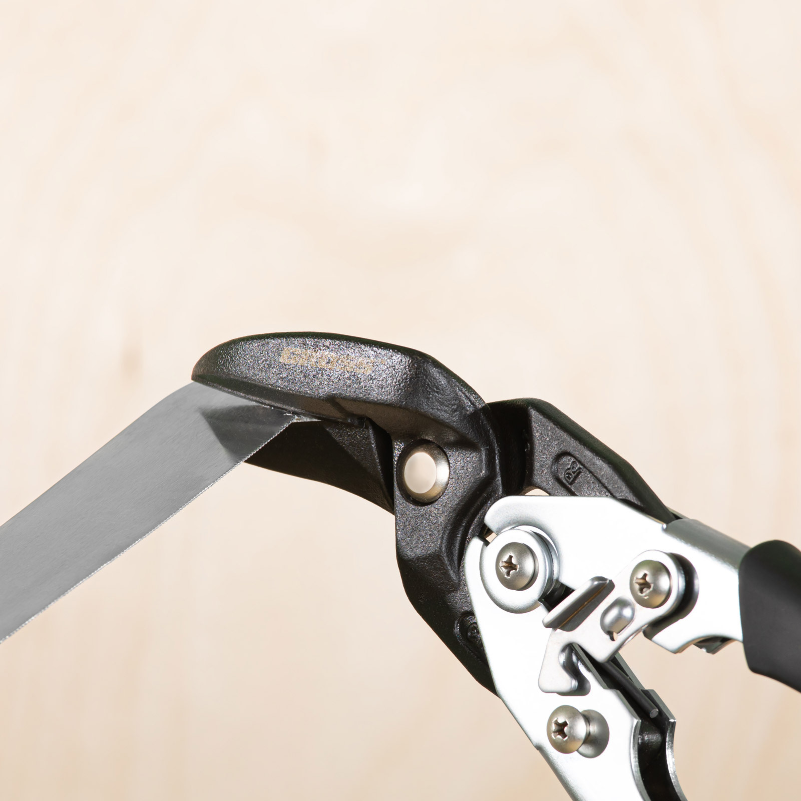 - Высокая режущая способность — лезвия закалены индукционными токами до твердости 60-62 HRC, поэтому успешно справляются с резкой листового металла.