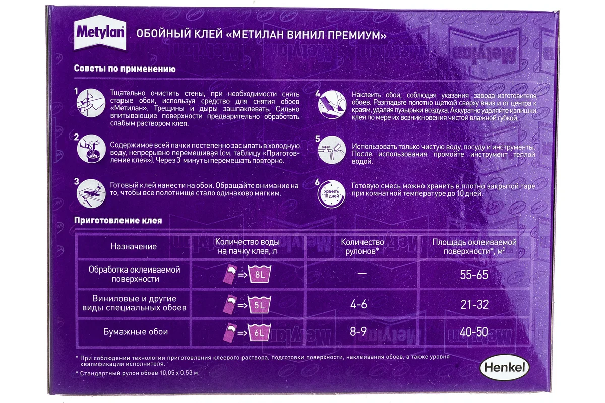 Обойный клей Метилан Винил Премиум без индикатора 200 г рекомендуется для работы с обоями: бумажными, виниловыми, структурными, текстильными, а также шелкографией.