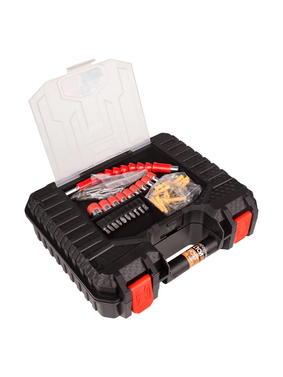 Шуруповерт; 2 аккумулятора 2.0 А·ч; зарядное устройство; пластиковый кейс; инструкция