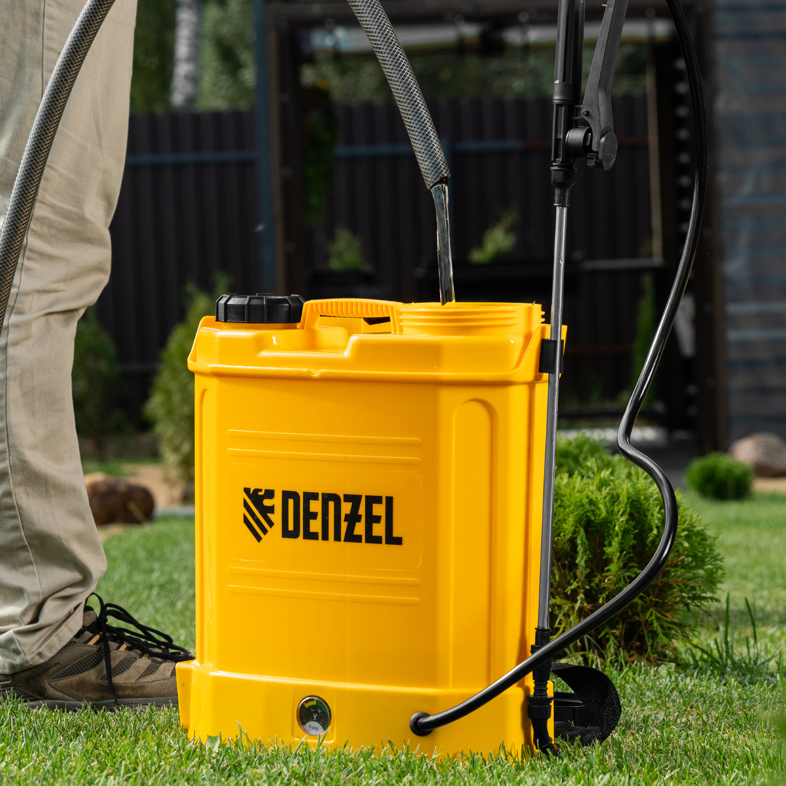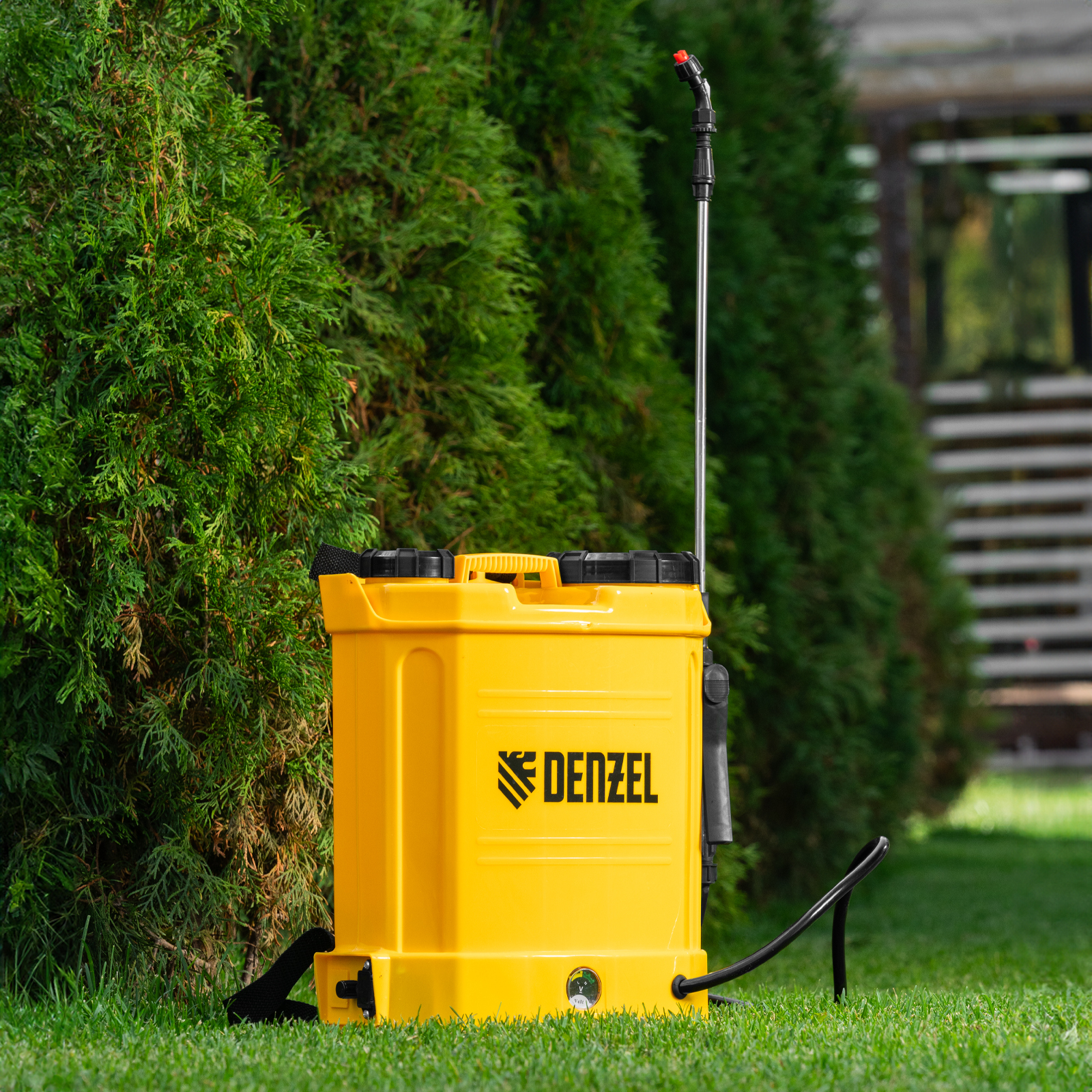 Ранцевый аккумуляторный опрыскиватель Denzel D-12LA 64788 с баком объемом 12 л и батареей на 12 В, емкостью 8 Ач, предназначен для распыления воды или инсектицидов. Используется для ухода за растениями, дезинфекции помещения, мытья окон и фасадов. Длина штанги регулируется в диапазоне 470-820 мм, а максимальная дальность распыления составляет 4 м, что облегчает обработку труднодоступных мест.