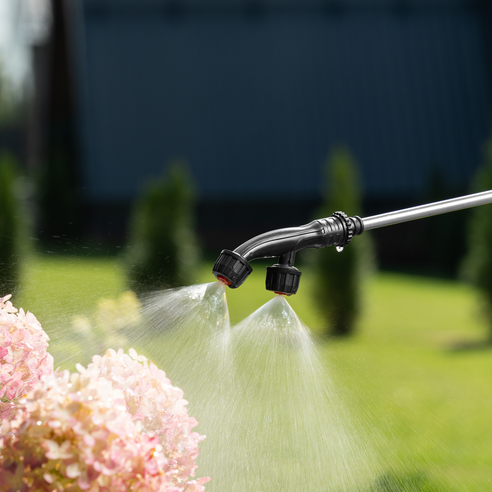 - Удобное перемещение — плечевые ремни с мягкими накладками равномерно распределяют вес опрыскивателя, снижая нагрузку на спину.