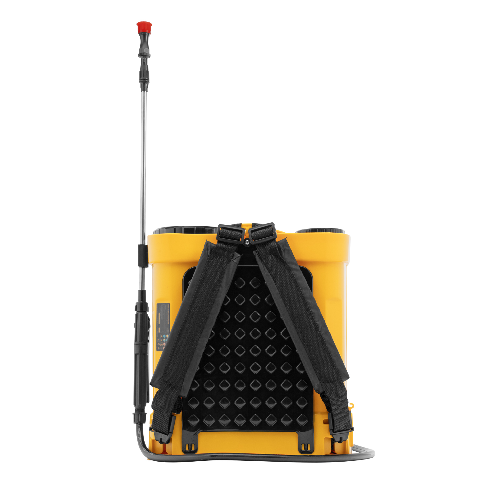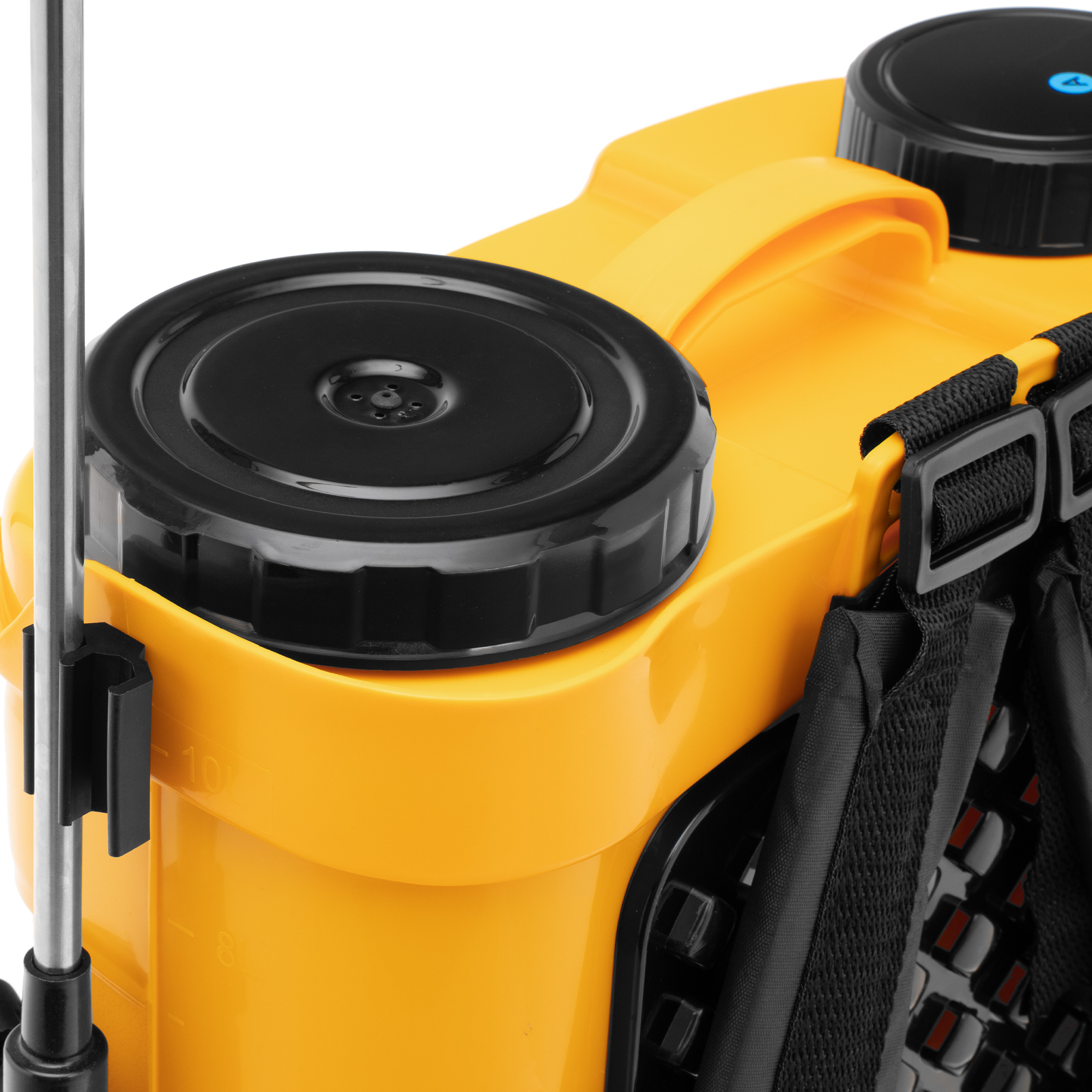 - Удобное перемещение — плечевые ремни с мягкими накладками равномерно распределяют вес опрыскивателя, снижая нагрузку на спину.