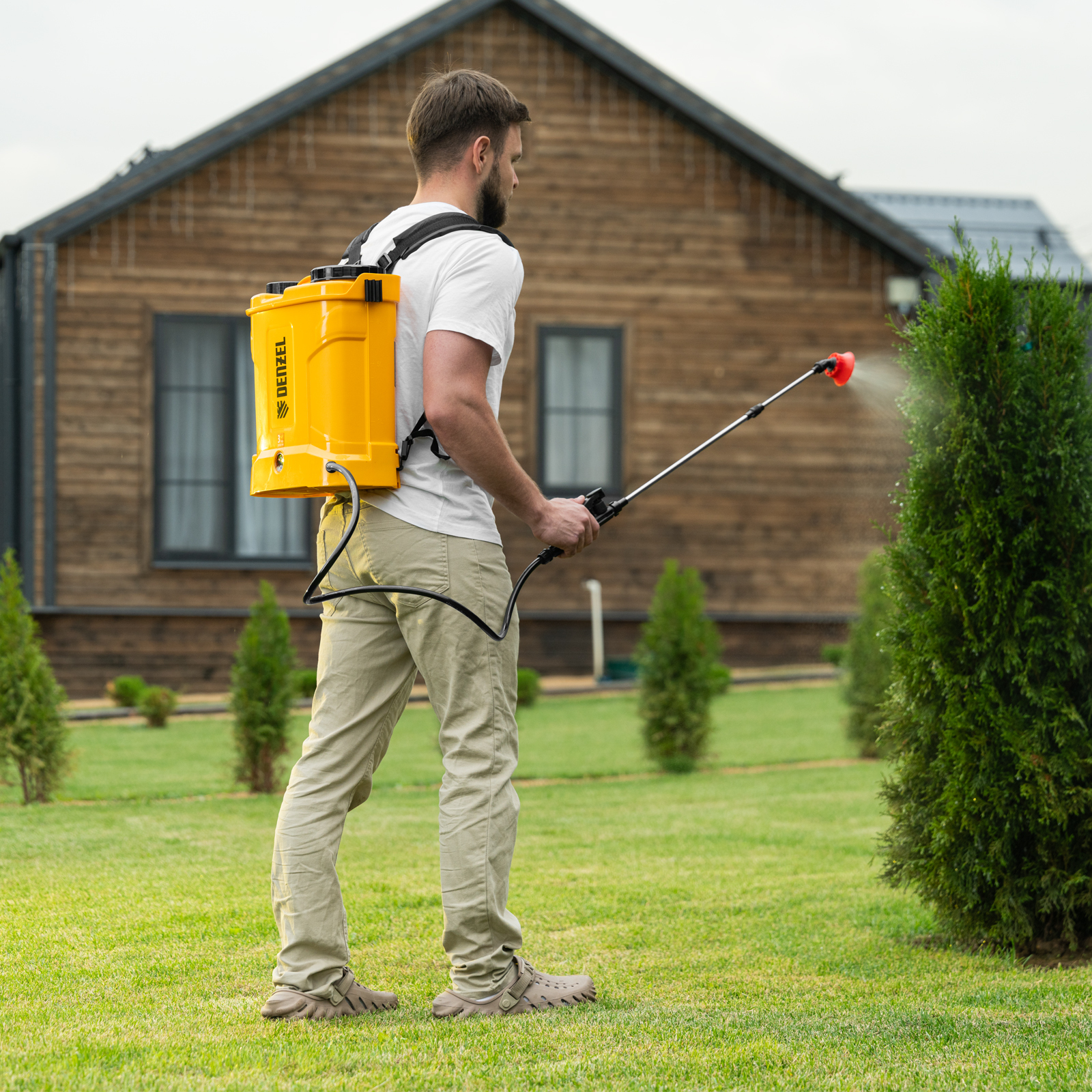 - Максимально комфортное использование — опрыскиватель не зависит от электросети, не требует сложного технического обслуживания и не выделяет неприятного запаха и вредных выхлопов.