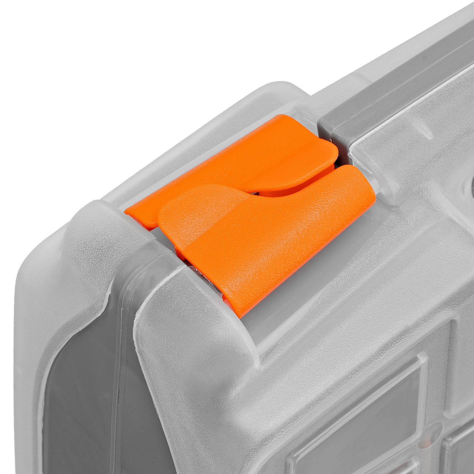 - Защелки и ручка обеспечивают удобство транспортировки органайзера.