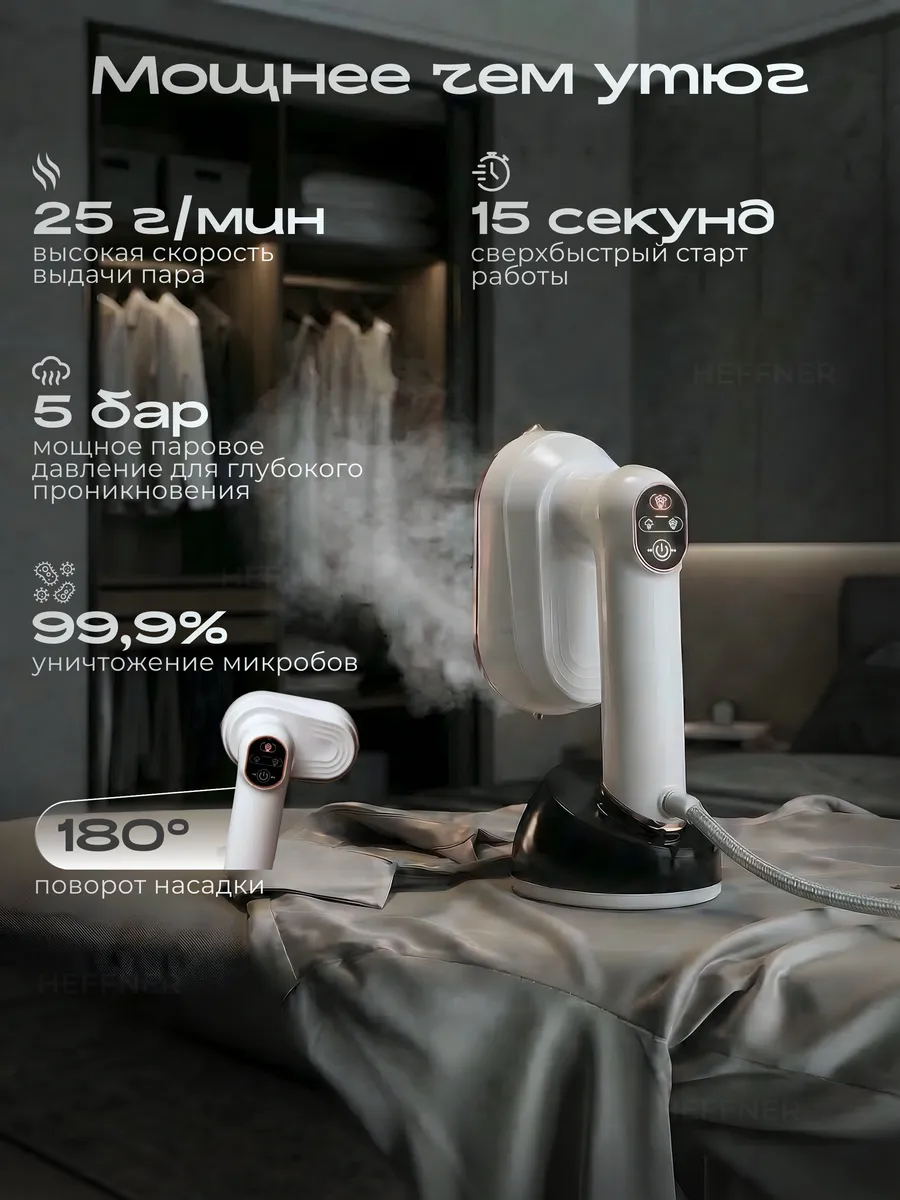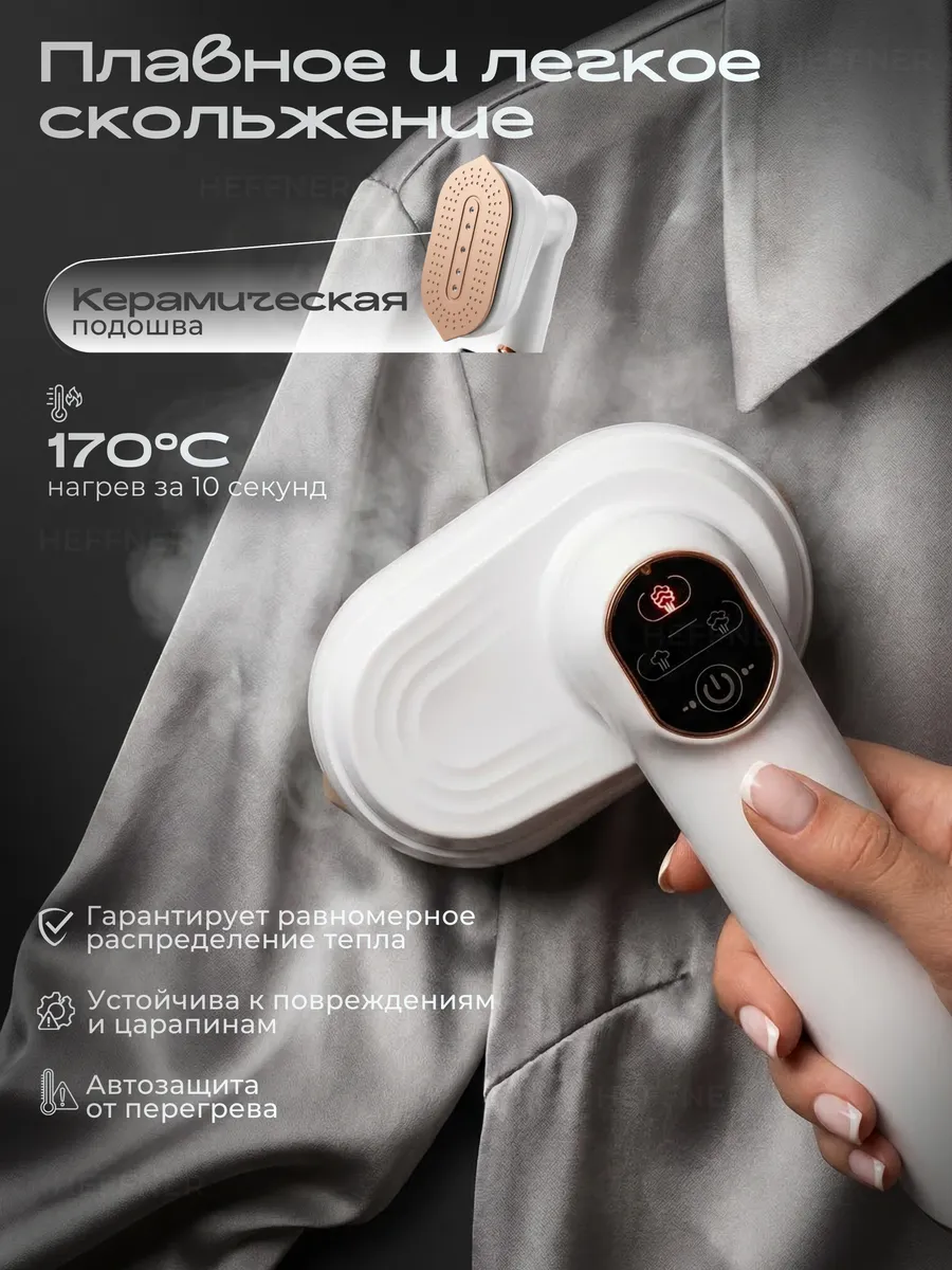 Отпариватель ручной для одежды ваше быстрое решение для безупречного вида вещей! Этот компактный ручной отпариватель моментально справляется с мятостью благодаря системе быстрого нагрева всего за 10 секунд. Он готов к интенсивной работе до 15 минут подряд, что позволяет легко обработать даже объемные изделия. Для максимальной эффективности устройство предлагает три режима подачи пара и гарантирует стабильный поток 32 г/мин. Использование максимально комфортно: вращающаяся ручка и возможность горизонтального отпаривания упрощают процесс. Сенсорное управление с понятной индикацией режимов (включение, готовность, рабочая мощность) делает работу интуитивно понятной. Керамическое покрытие подошвы и корпуса обеспечивает плавное и бережное скольжение по любой ткани. Этот отпариватель для одежды — ваш надежный помощник для быстрого освежения гардероба и придания вещам опрятного вида в любой ситуации. Забудьте о тяжелом и громоздком утюге — этот отпариватель справляется с задачей быстрее и проще. В отличие от обычного утюга, он не оставляет блестящих следов и подходит даже для самых деликатных тканей, таких как шелк или шифон. Попробуйте, и вы поймете, почему современные хозяйки все чаще выбирают отпариватель вместо классического утюга.
