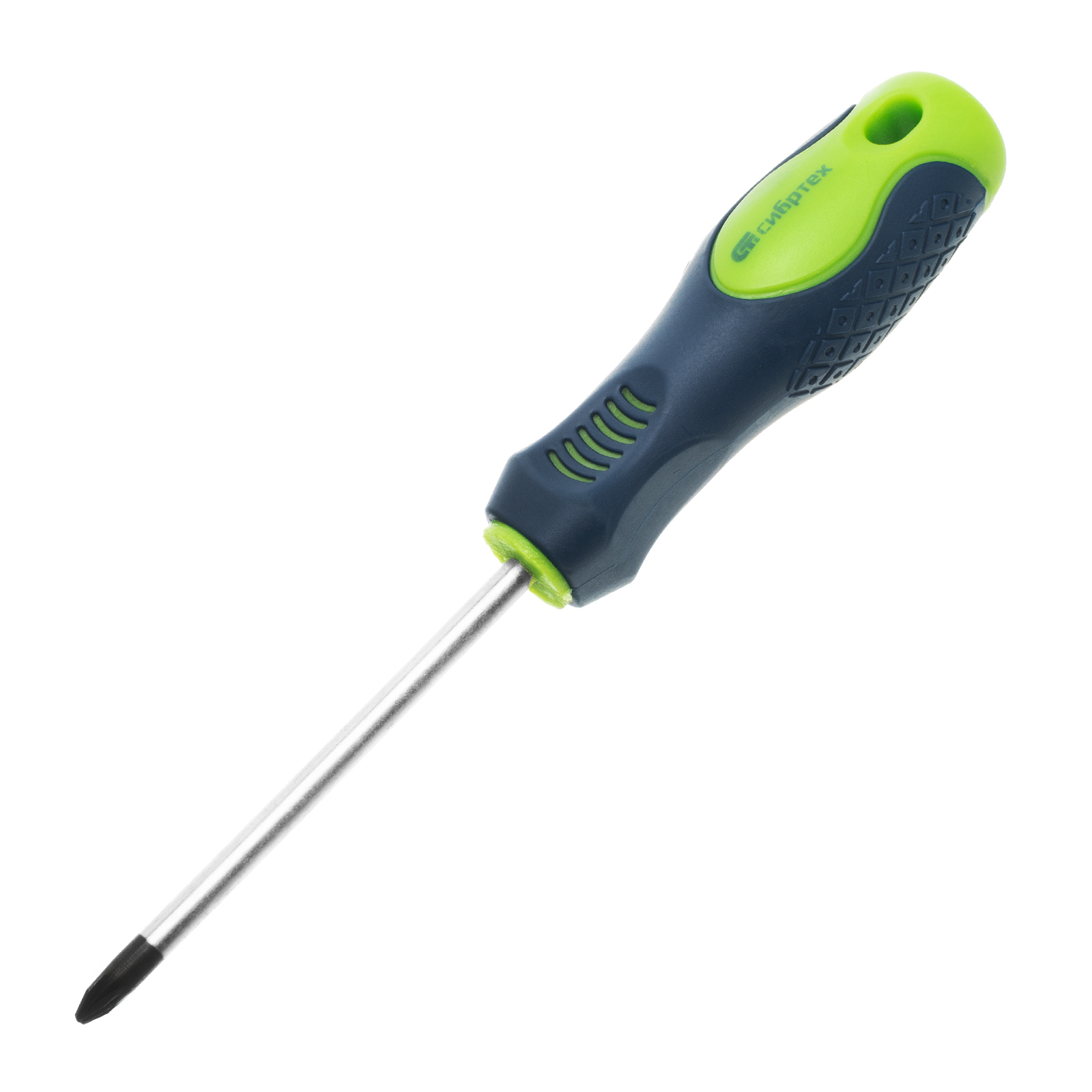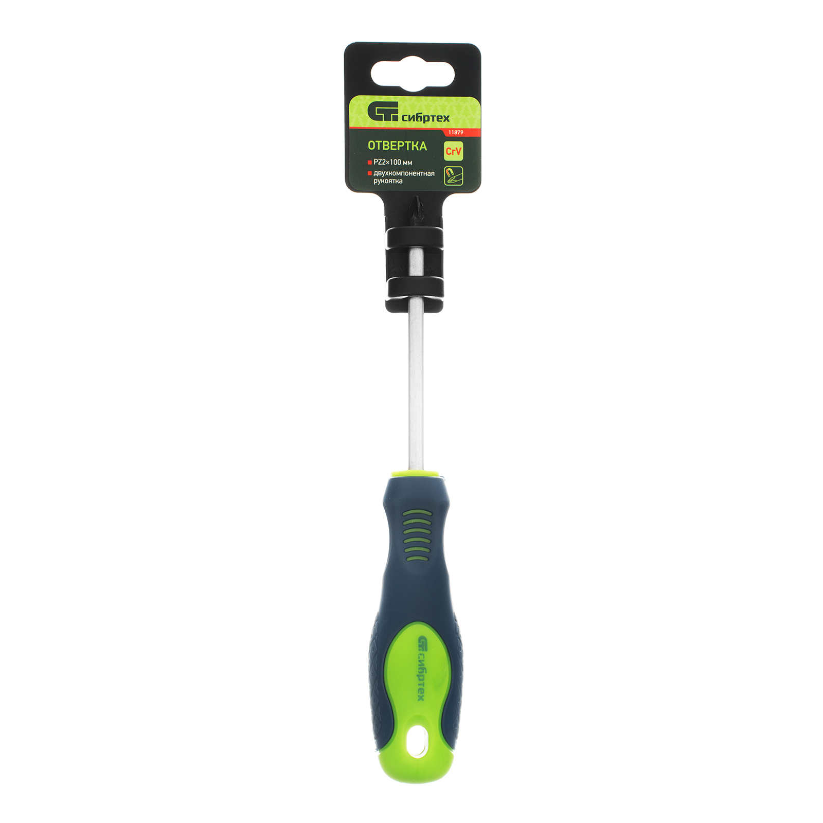 Отвертка Сибртех 11879, PZ2 х 100 мм, из стали CrV, с 2-х компонентной рукояткой, оснащена крестовым шлицем с 4 дополнительными насечками для лучшего сцепления с крепежом. Она подходит для монтажа/демонтажа крепежных элементов типа Pozidriv. Отвертка полупрофессионального класса поможет при сборке мебели, установке полок и т.д. Стержнем длиной 100 мм удобно работать на поверхностях и в углублениях.