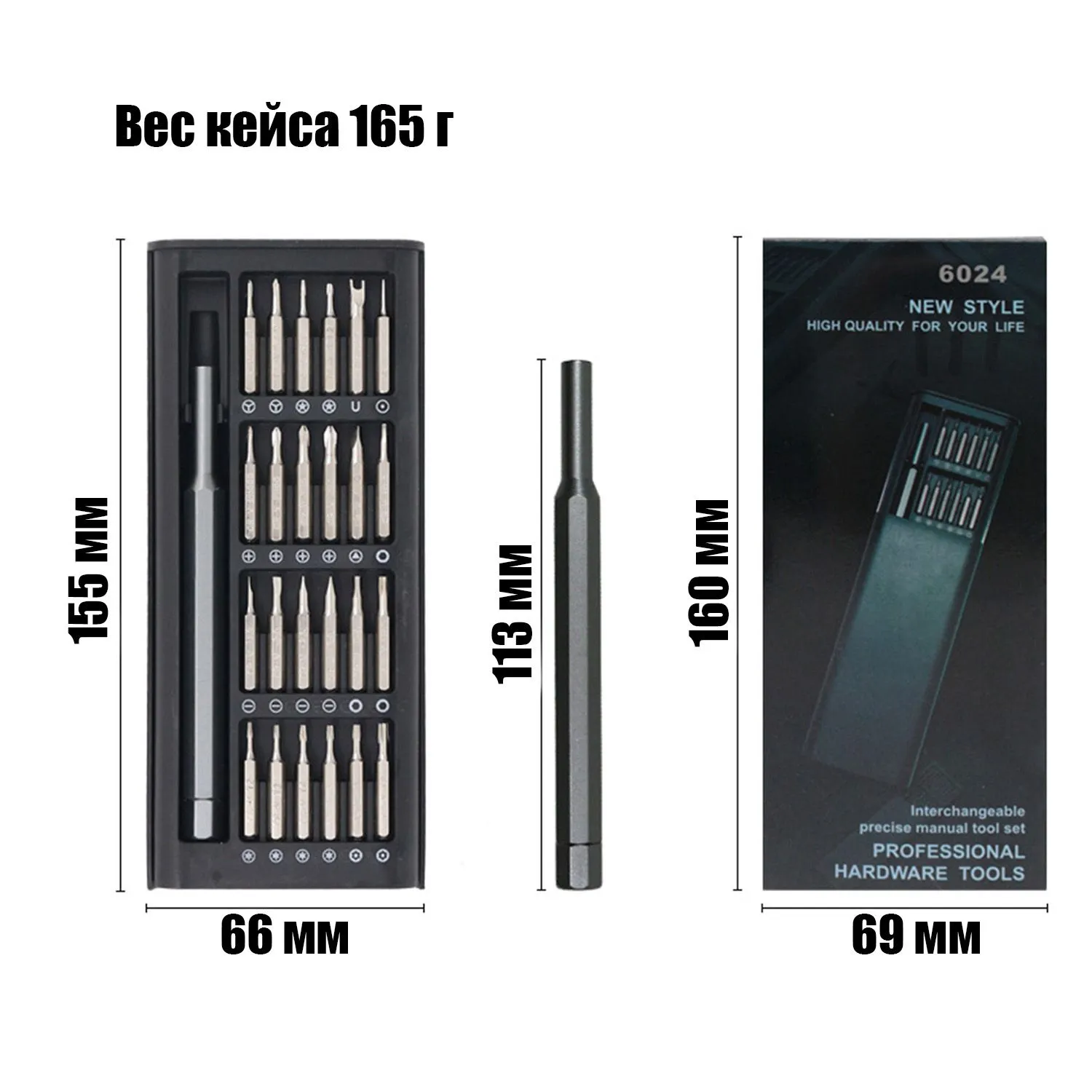 Отвертка, магнитные биты 24шт, пластиковый кейс