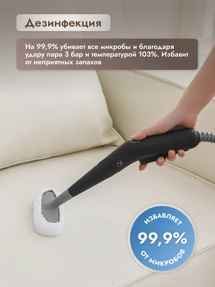 Пароочиститель для дома — это незаменимый помощник в уборке, который обеспечивает эффективное очищение самых труднодоступных мест и эффективно удаляет грязь и бактерии. Этот мощный парогенератор имеет алюминиевый бойлер, обеспечивает постоянную подачу пара под давлением до 3 бар, что позволяет быстро и легко удалять даже въевшиеся пятна и неприятные запах. Благодаря длинному шлангу, паровой очиститель обеспечивает удобство работы даже в самых удаленных уголках. Этот пароочиститель с лёгкостью справляется с различными задачами по уборке в ванной, кухне и комнатах, и отпариванию одежды и штор. Многофункциональный прибор оснащен девятью различными насадками, которые позволяют чистить технику на кухне, окна, сантехнику, кафель и мебель. Это универсальное устройство станет отличным выбором для тех, кто хочет сэкономить время для уборки кухни и других помещений. Паровой очиститель легко удаляет жир и справляется с загрязнениями в труднодоступных местах, включая детали кухонной плиты или вытяжки, плинтусы полов и стыки дивана. Специальная насадка с текстильным чехлом очистит мебель и освежит шторы. Ручной пароочиститель — это компактный и удобный прибор, который идеально подходит для быстрой уборки и отпаривания. Он станет отличным дополнением к вашей бытовой технике. Пароочиститель для уборки с насадками — это надежное решение для поддержания чистоты и уюта в вашем доме. Универсальность, мощность и удобство делают его незаменимым выбором для вашего дома или квартиры и станет прекрасным подарком женщине или мужчине. Практичная техника будет хорошим презентом для мамы, любимой, бабушке, коллеге на 8 Марта, новоселье, годовщину свадьбы или день рождения.