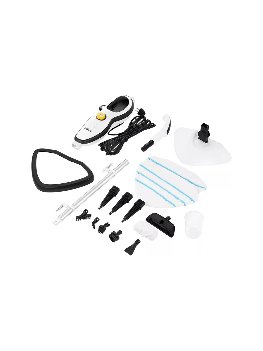 Множество насадок, которые идут в комплекте с паровой шваброй, справятся с труднодоступными местами и сложными поверхностями. Стакан для наливания воды служит для удобного и безопасного наливания воды в резервуар.
