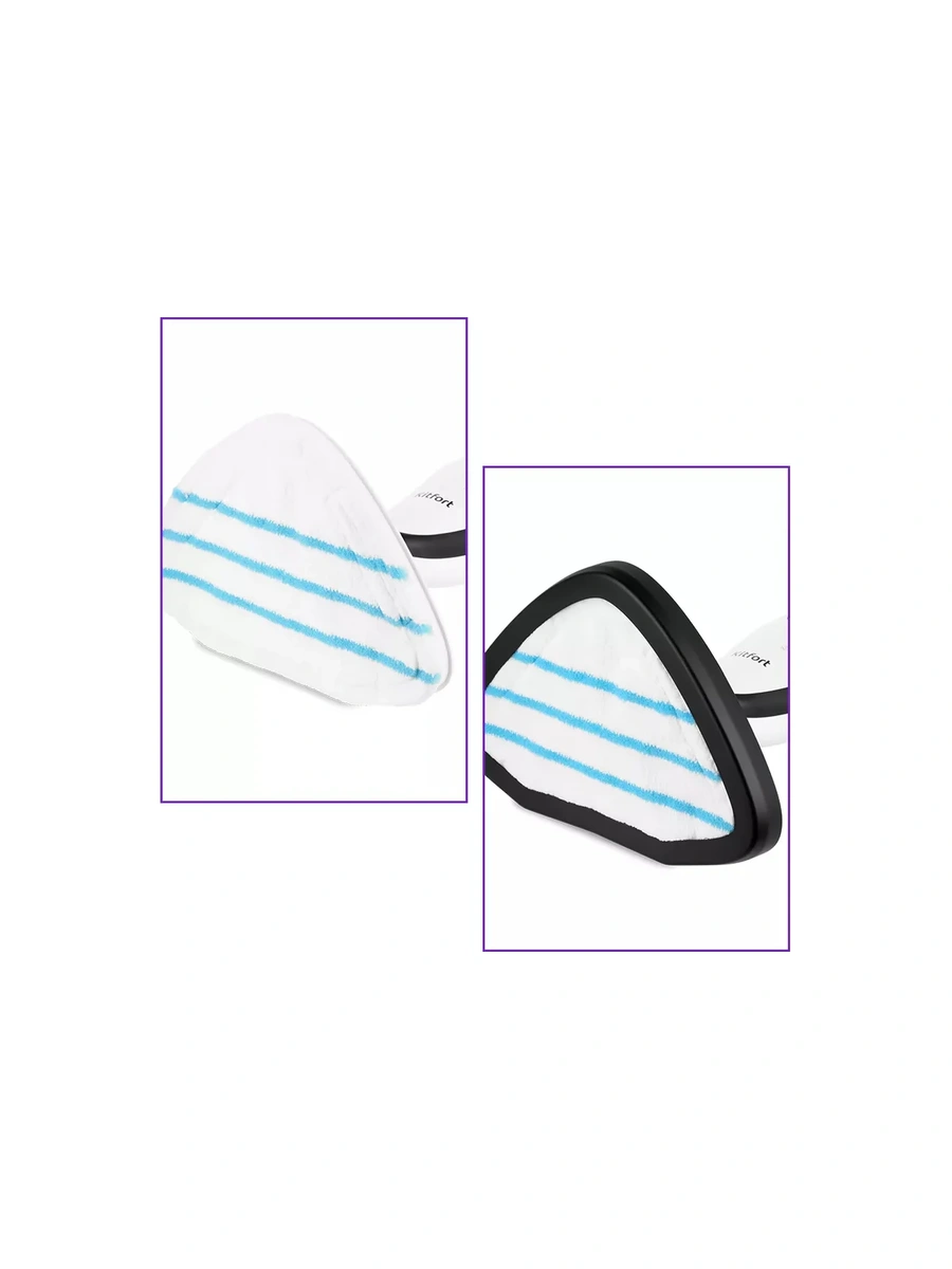 Тряпка для пола устанавливается на напольную щётку с помощью липучек. Её можно стирать в стиральной машине в тёплой воде. В комплекте есть рамка для ковра, которая обеспечивает лёгкое скольжение щётки во время чистки.