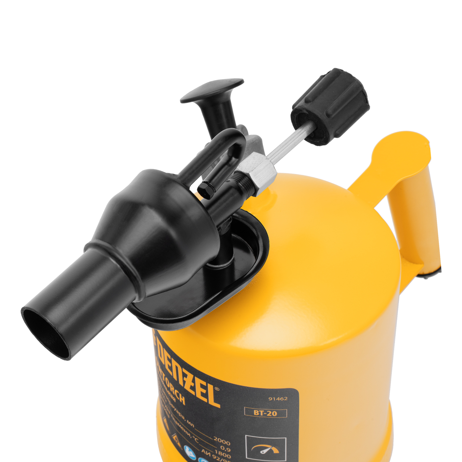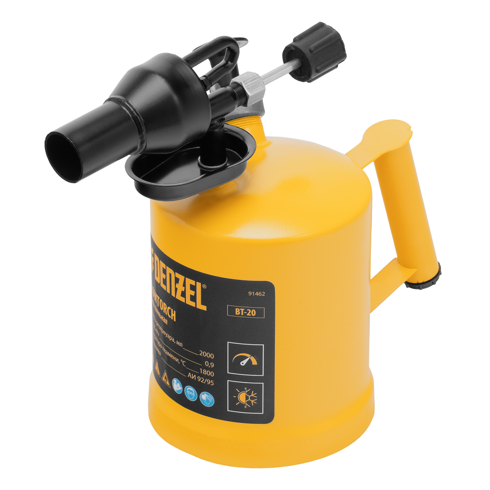 Паяльная лампа Denzel BT-20 91462 с баком объемом 2 л предназначена для нагрева поверхностей при помощи открытого направленного пламени. Полной заправки (1,5 л топлива) хватает больше чем на час работы при расходе 0,9 л/ч. Воздушный насос и форсунка высокого давления обеспечивают эффективную подачу топлива к эжектору. Лампа стабильно работает даже в ветреную погоду. Используется при выполнении ремонтных и демонтажных работ: пайки, сварки, ослаблении заклинивших резьбовых соединений, опаливании древесины, снятии лакокрасочных покрытий и других термических работ. Пригодится для обогрева двигателя. Также будет полезна в сельском хозяйстве и в быту.