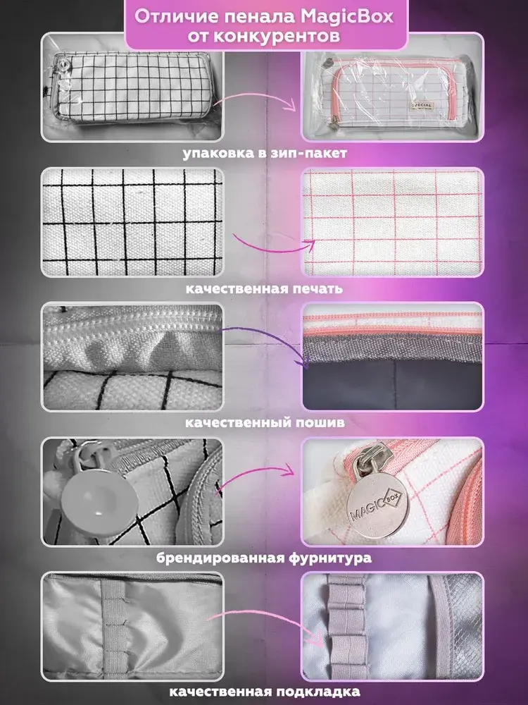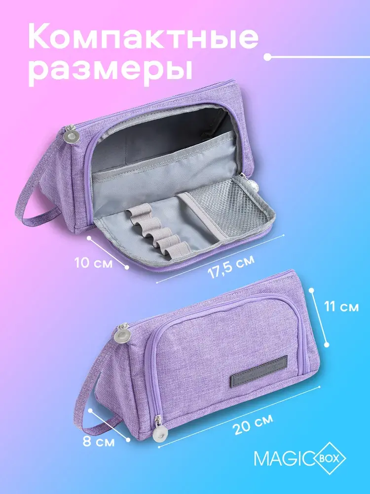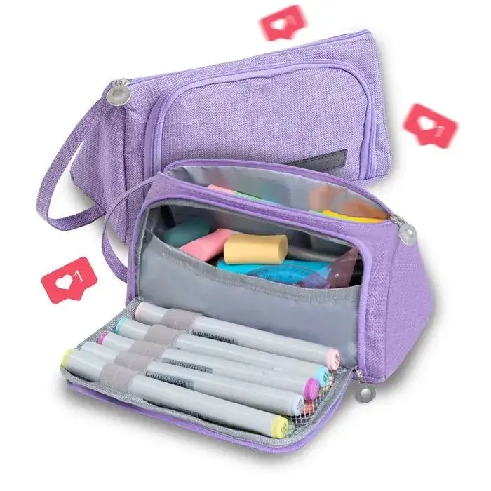 - Пенал состоит из просторного отделения на молнии, в котором можно легко разместить маркеры, двусторонние ручки и даже калькулятор, включая 2 кармана, в которых можно хранить ластики, стикеры или другие предметы.