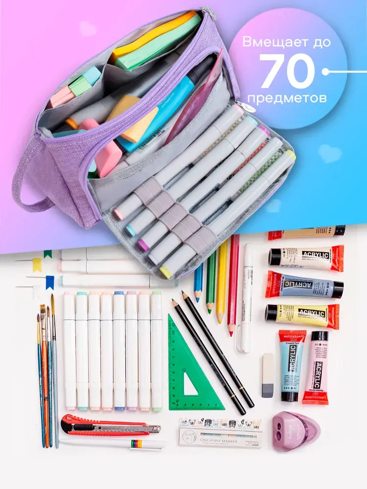 Несмотря на внешние компактные размеры, пенал большой вместительности, в нем можно хранить до 70 разных предметов.