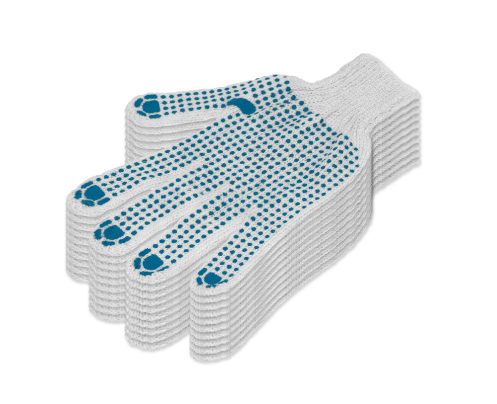 Трикотажные перчатки Сибртех 67718 с ПВХ-покрытием «Точка», 5 пар в упаковке, благодаря 7 классу вязки обеспечивают надежную защиту рук от грязи, царапин, мозолей и механических повреждений. Пригодятся во время проведения садовых, строительных, погрузочно-разгрузочных и других работ. Перчатки гипоаллергенны, удобно сидят на руках и не стесняют движений.