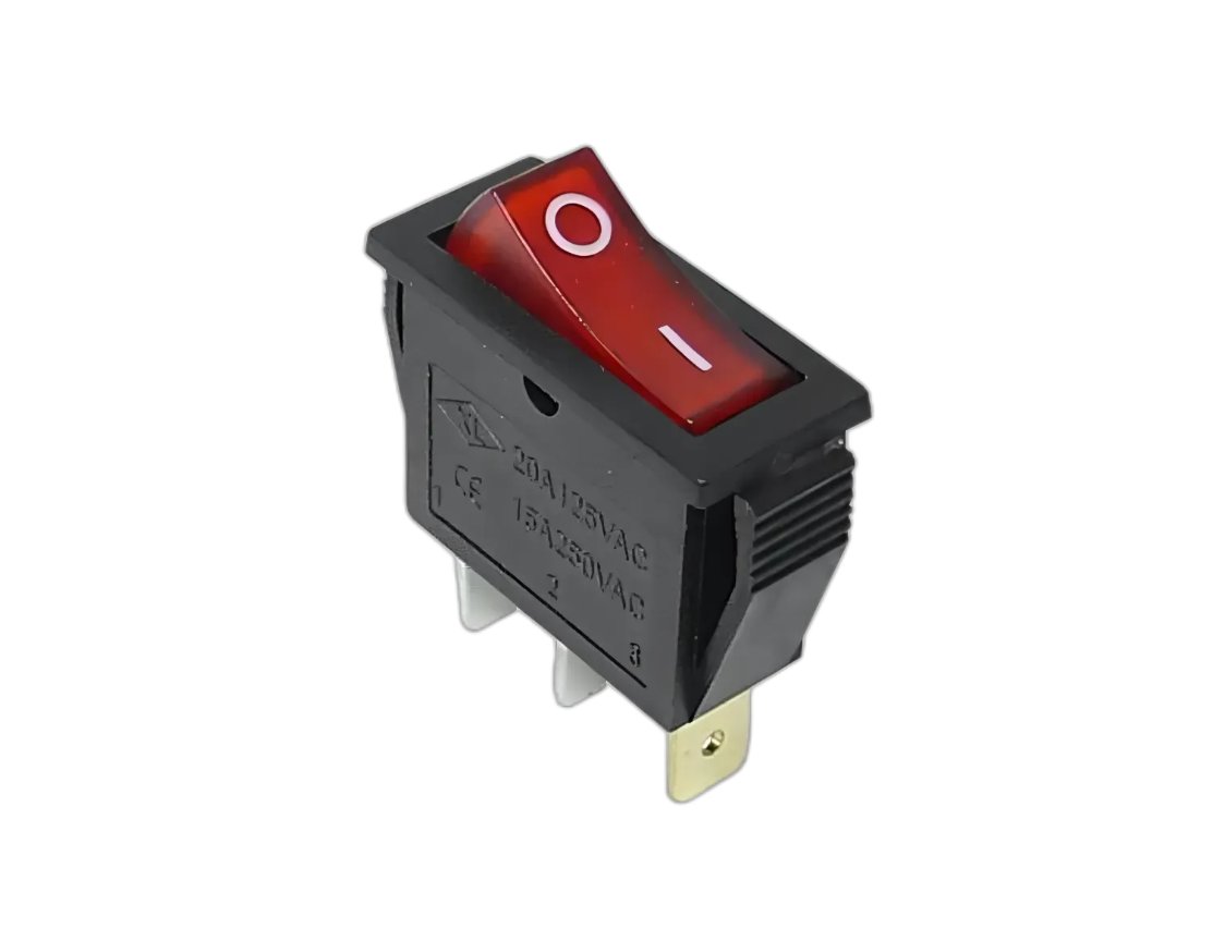 Переключатель узкий 3-конт. SC791 15А ( красная клавиша)/1 клавишный предназначен для коммутации электрических цепей переменного тока напряжением до 250В в условиях повышенной влажности. Клавишные (Рокерные) выключатели применяются в качестве комплектующих изделий различного электрооборудования (в сетевых фильтрах и удлинителях, аудио-оборудовании, блоках питания, электроустановках на различных производствах, автомобилях, и многих других местах). Защитная оболочка клавиши обеспечивает влаго и пылезащиту механизма переключения. Такой клавишный переключатель имеет два положения. Принцип действия основан на перемещении клавиши в одну из позиций. Для переключения в нужное положение требуется приложить некоторые усилия на клавишу. Монтаж осуществляется без применения винтов на плоских панелях толщиной от 0.8 мм до 3 мм. Подключение контактов осуществляется плоской клеммой, либо с помощью пайки. Габариты индивидуальной упаковки: Длина: 66 мм Ширина: 34,4 мм Высота: 8 мм Вес упаковки: 8 грамм Технические характеристики: Номинальный ток: 15А Номинальное напряжение: 250В Количество контактов: 3 Тип переключения: ON-OFF Цвет клавиши: красный Цвет корпуса: черный Степень защиты: IP30 Габариты самого переключателя: Высота наружной части: 31,5 мм Глубина монтажа: 29,5 мм Диаметр монтажного отверстия: 10 мм Общий диаметр: 28,85 мм Особенности конструкции: Монтаж без винтов Подходит для панелей толщиной 0,8-3 мм Подключение клеммой 6,6 мм или пайкой Наличие подсветки Фиксация положений Применение: Сетевые фильтры Удлинители Аудиооборудование Блоки питания Промышленное оборудование Автомобильная электроника