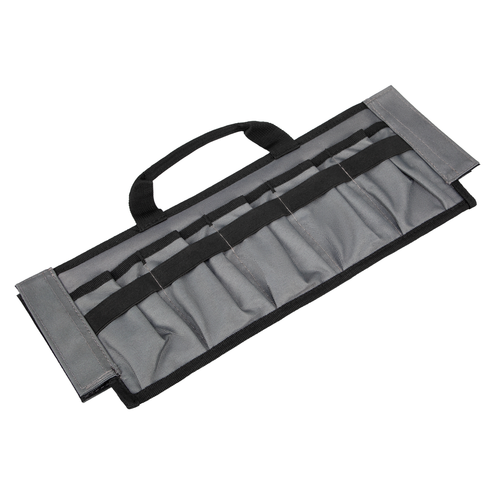 - Дополнительные возможности — в переноске предусмотрен отдельный карман для ножовки, а также зацеп для рулетки.