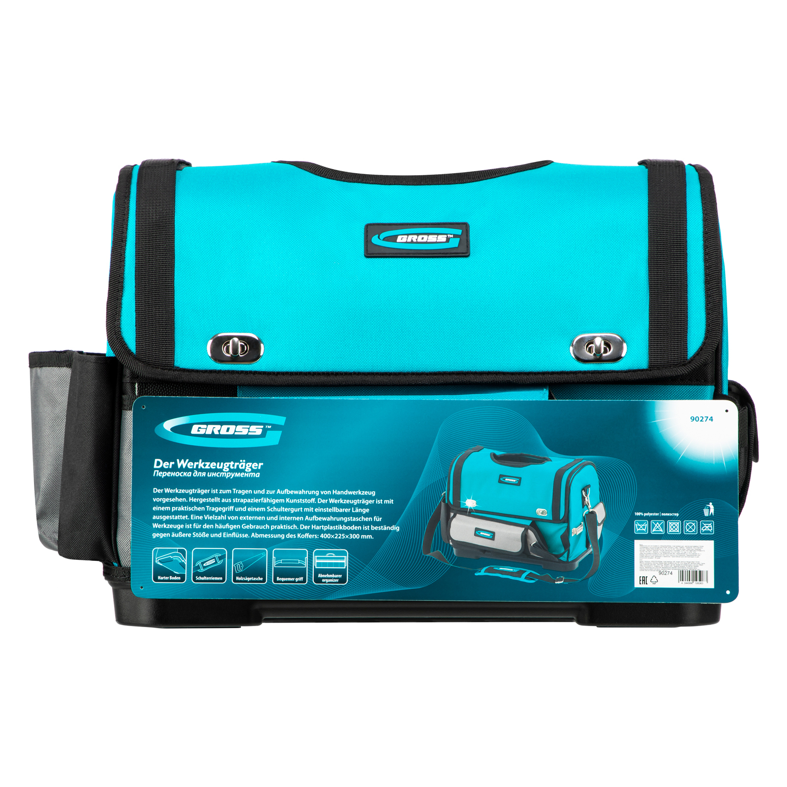 Переноска Gross 90274 размером 400 х 225 х 300 мм с пластиковым дном и наплечным ремнем используется для хранения и перемещения ручного и электроинструмента. Сумка с прочным дном и надежной ручкой выдерживает значительный вес. Пригодится дома, в гараже и поездке.