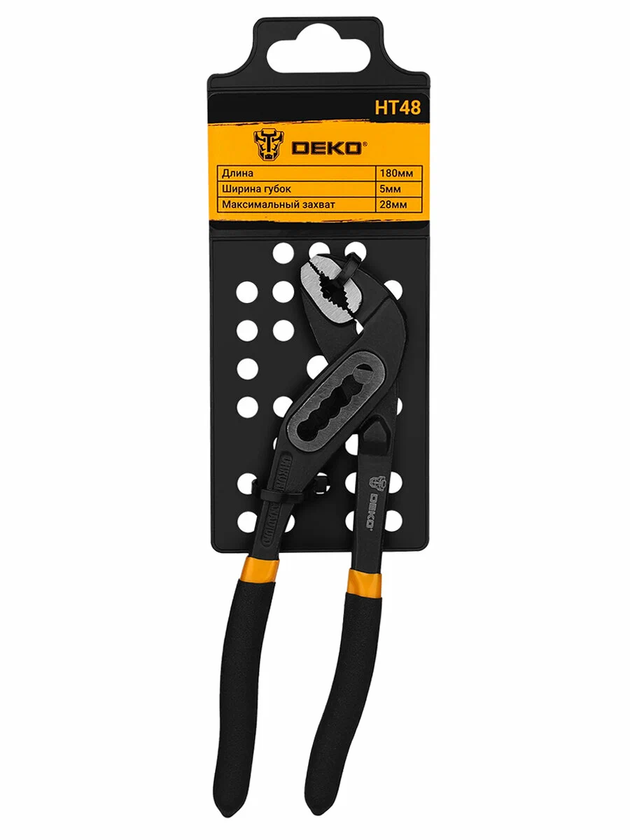 Переставные клещи DEKO HT48 — профессиональный инструмент для монтажных, сантехнических и ремонтных работ. Конструкция с регулируемым шарнирным механизмом и кнопкой быстрой настройки позволяет адаптировать ширину раскрытия губок под различные размеры крепёжных элементов, труб и деталей.