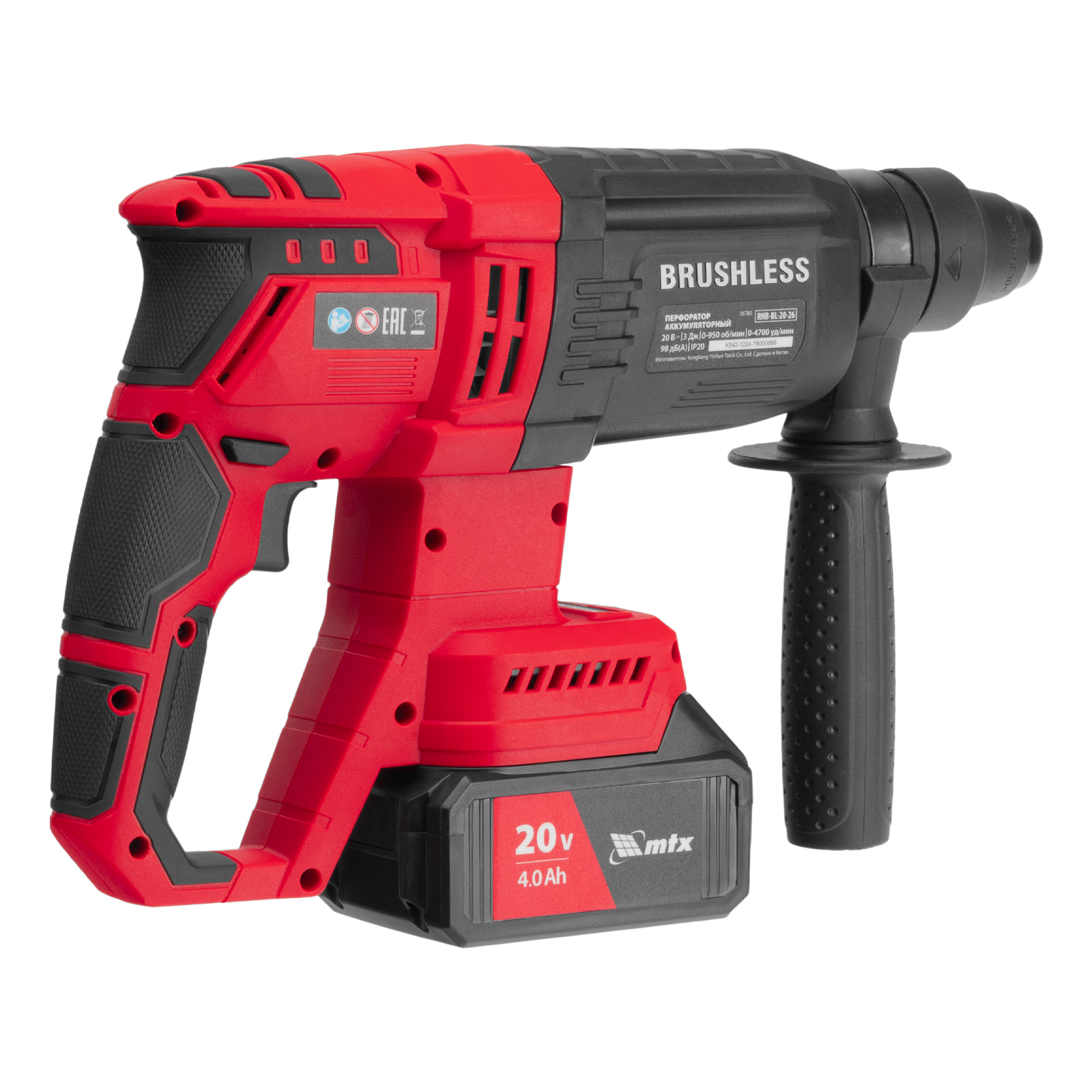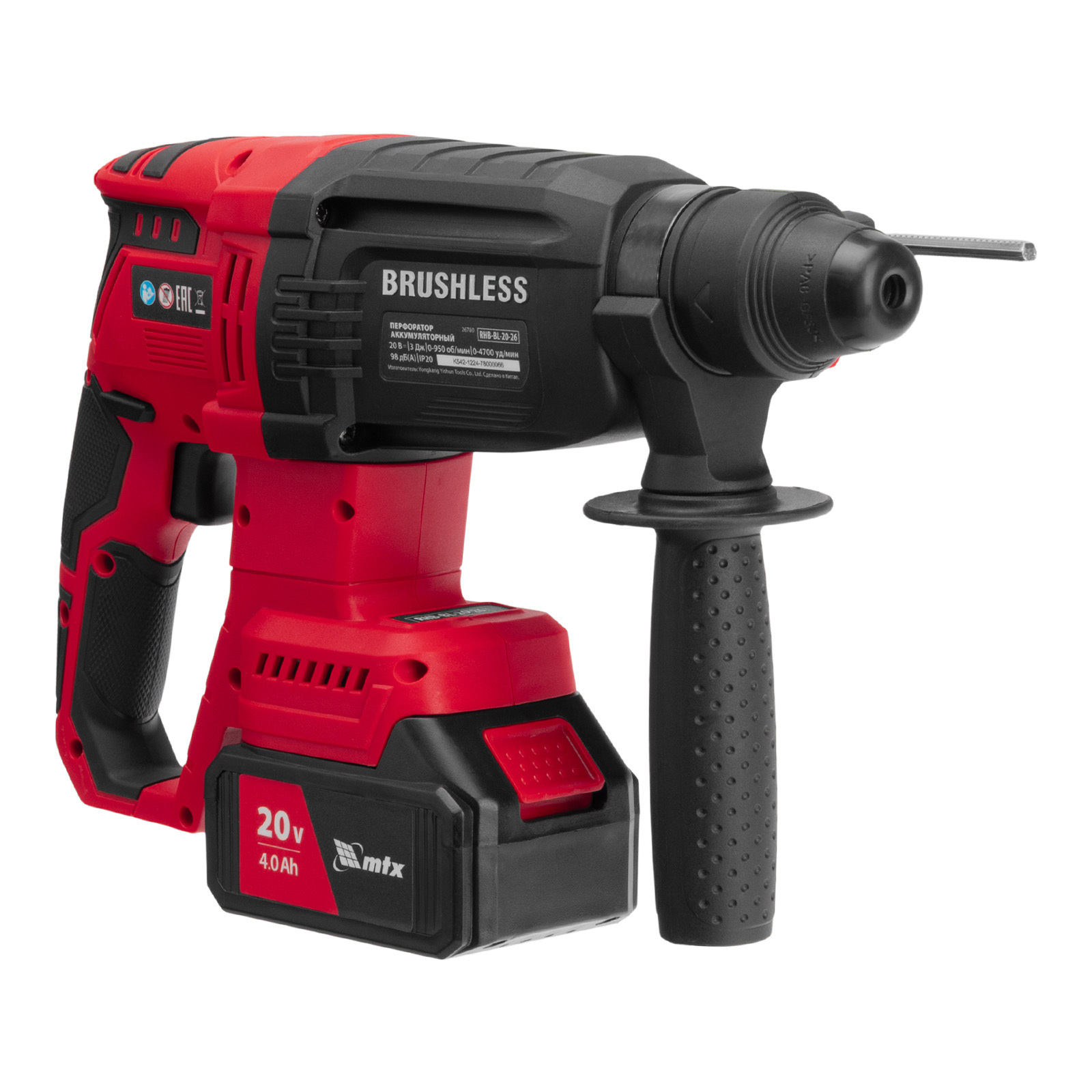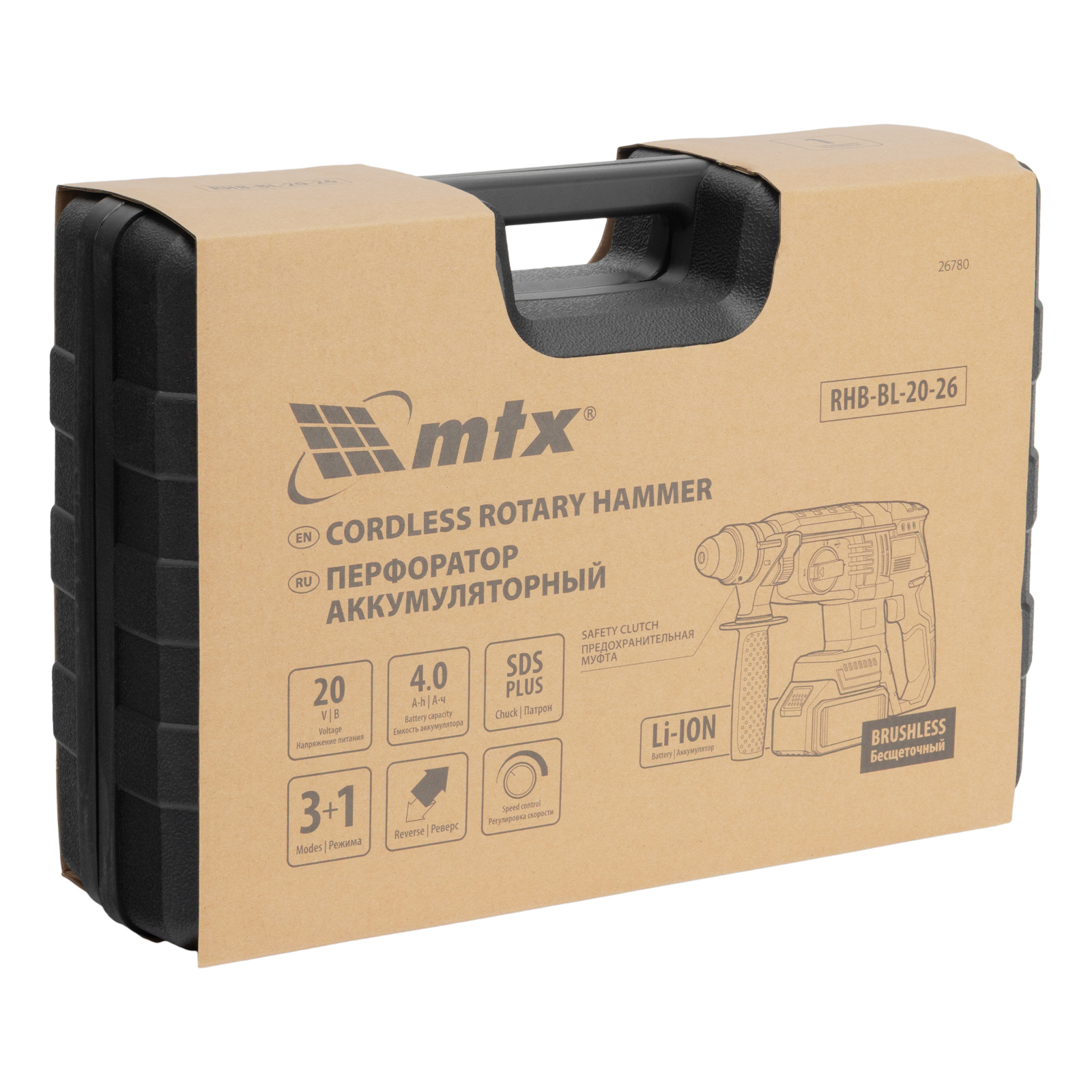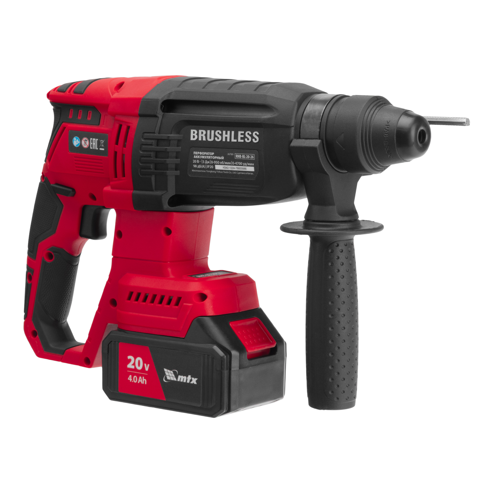 Аккумуляторный перфоратор MTX RHB-BL-20-26 26780 с бесщеточным двигателем работает от батареи Li-Ion 20 В и развивает энергию удара 3 Дж. Позволяет сверлить различные материалы, бурить отверстия, штробить и пробивать борозды в бетоне, камне, кирпиче, разрушать кирпичную кладку. Мощный бесщеточный двигатель устойчив к высоким нагрузкам и обеспечивает силу удара, достаточную для эффективной работы с материалами высокой твердости. Максимальный диаметр сверления в бетоне достигает 26 мм, древесине — 30 мм, металле — 10 мм. Патрон совместим с оснасткой SDS Plus, которая надежно фиксируется и не проворачивается во время работы. Перфоратор позволяет успешно решать большинство задач в быту.