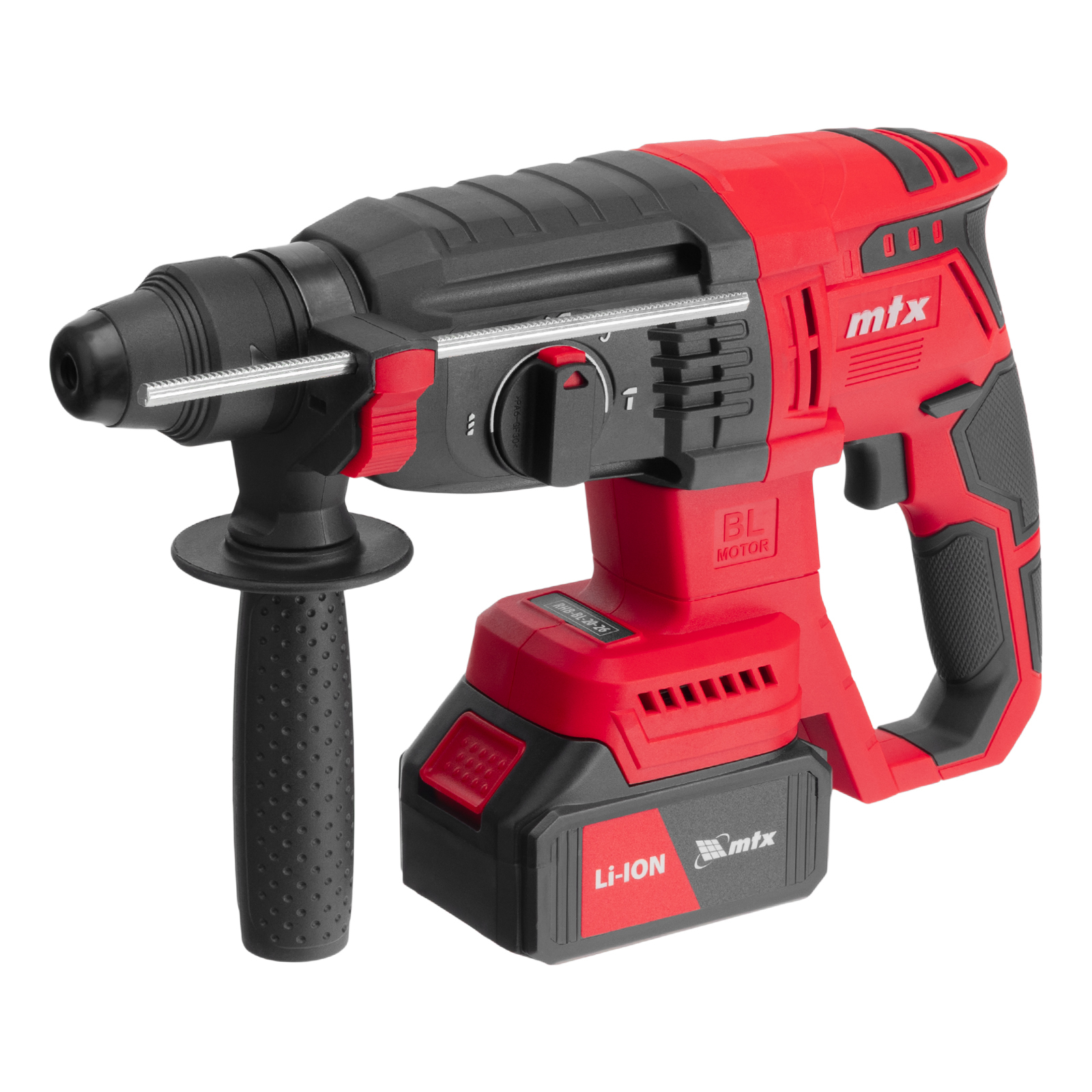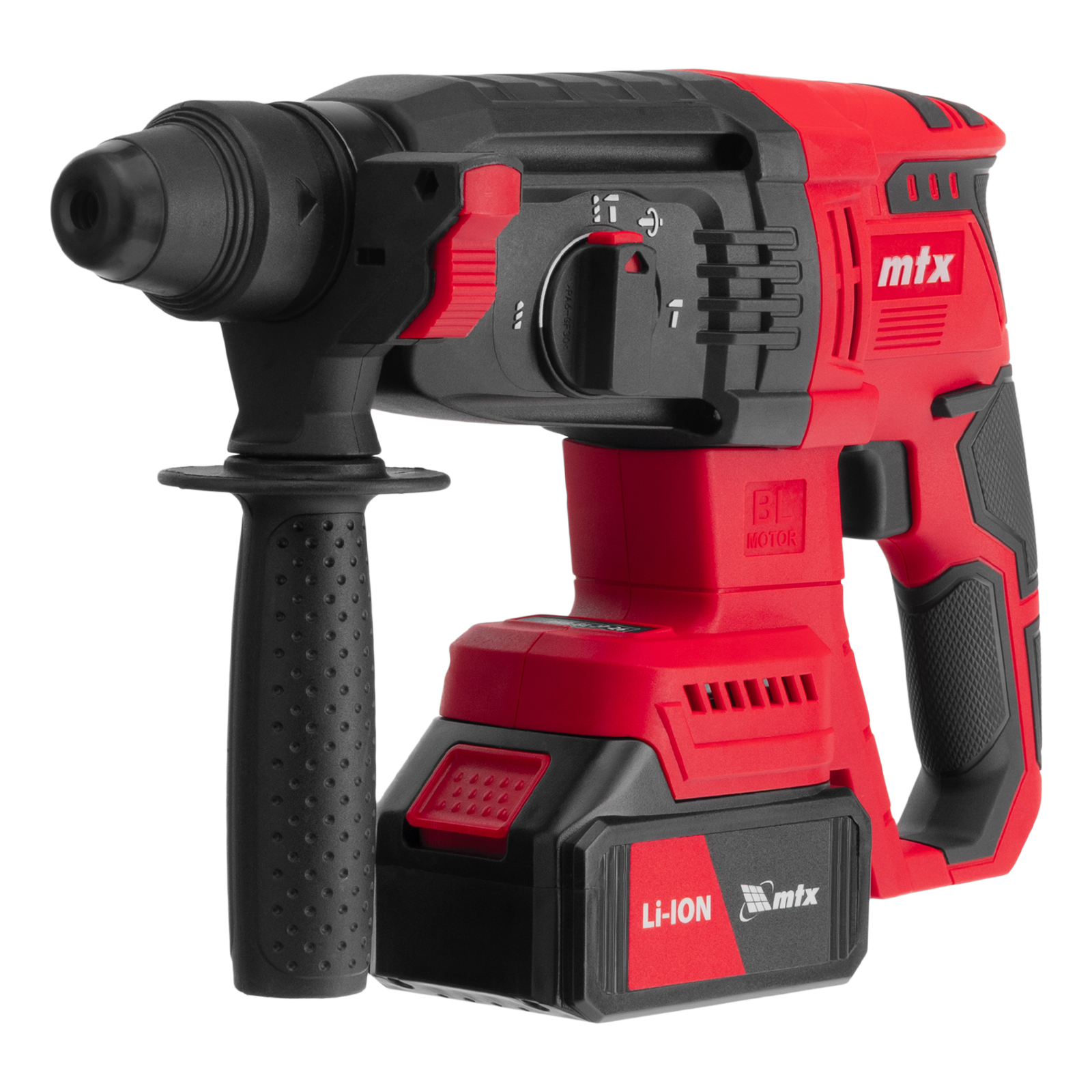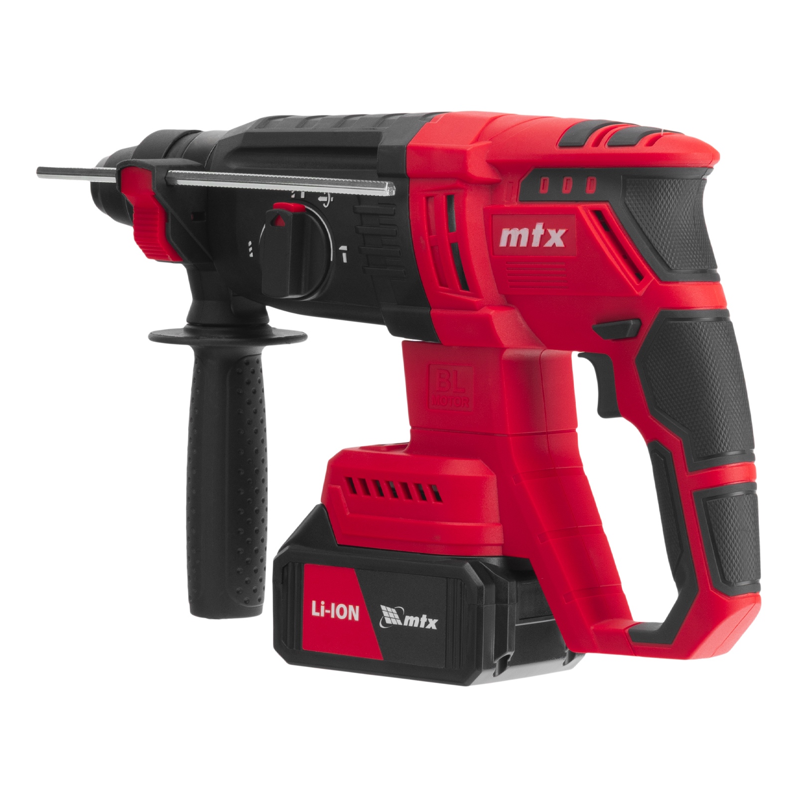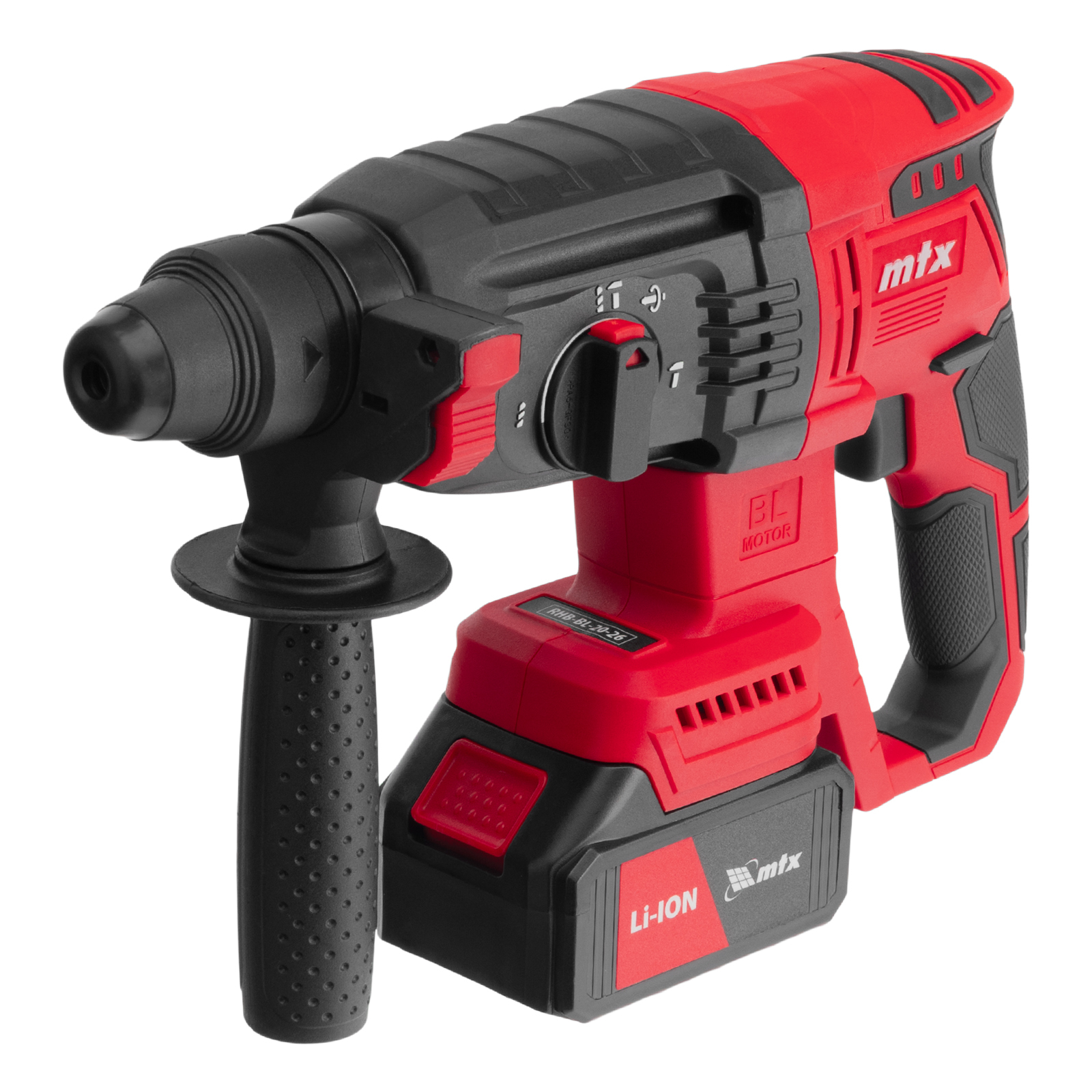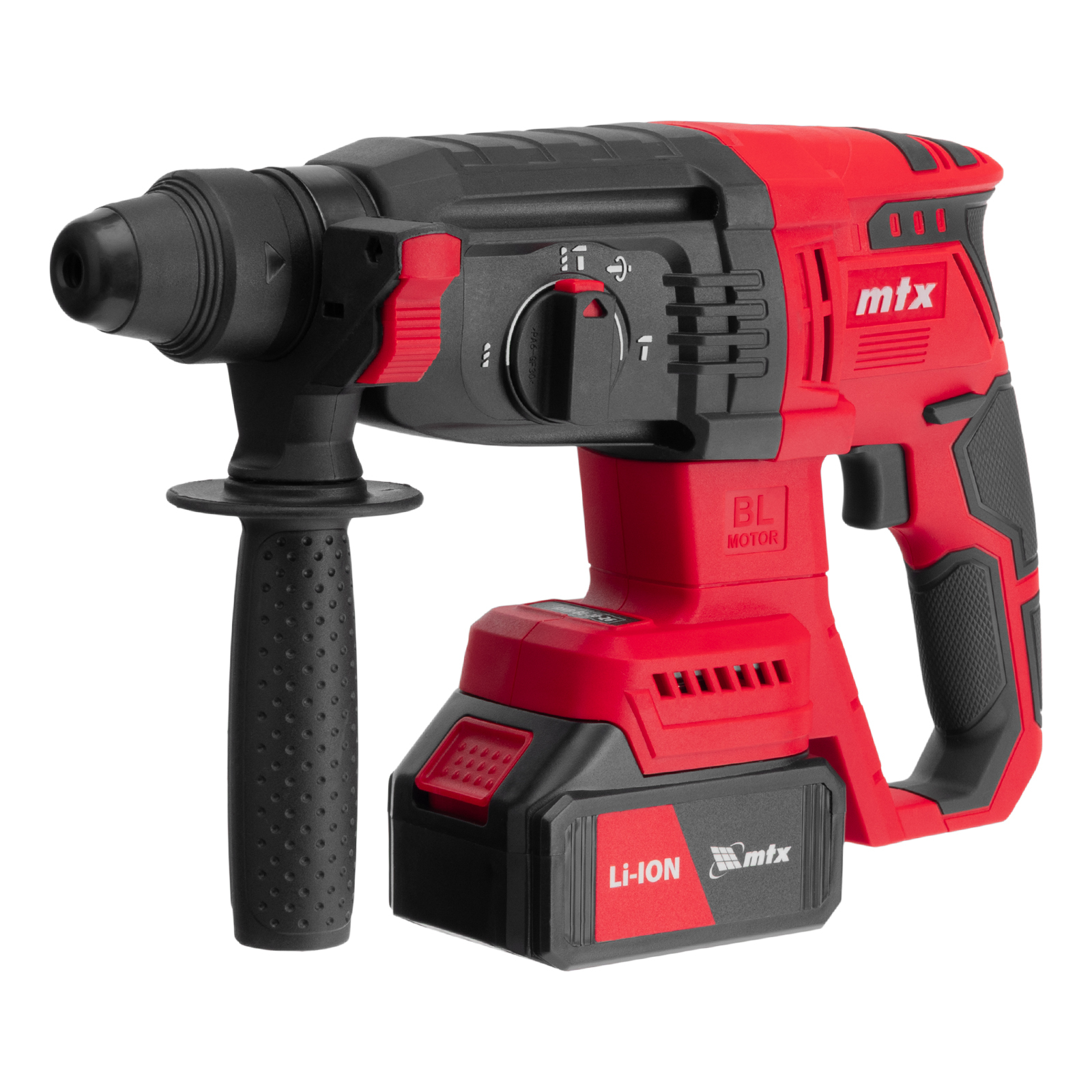 Аккумуляторный перфоратор MTX RHB-BL-20-26 26780 с бесщеточным двигателем работает от батареи Li-Ion 20 В и развивает энергию удара 3 Дж. Позволяет сверлить различные материалы, бурить отверстия, штробить и пробивать борозды в бетоне, камне, кирпиче, разрушать кирпичную кладку. Мощный бесщеточный двигатель устойчив к высоким нагрузкам и обеспечивает силу удара, достаточную для эффективной работы с материалами высокой твердости. Максимальный диаметр сверления в бетоне достигает 26 мм, древесине — 30 мм, металле — 10 мм. Патрон совместим с оснасткой SDS Plus, которая надежно фиксируется и не проворачивается во время работы. Перфоратор позволяет успешно решать большинство задач в быту.