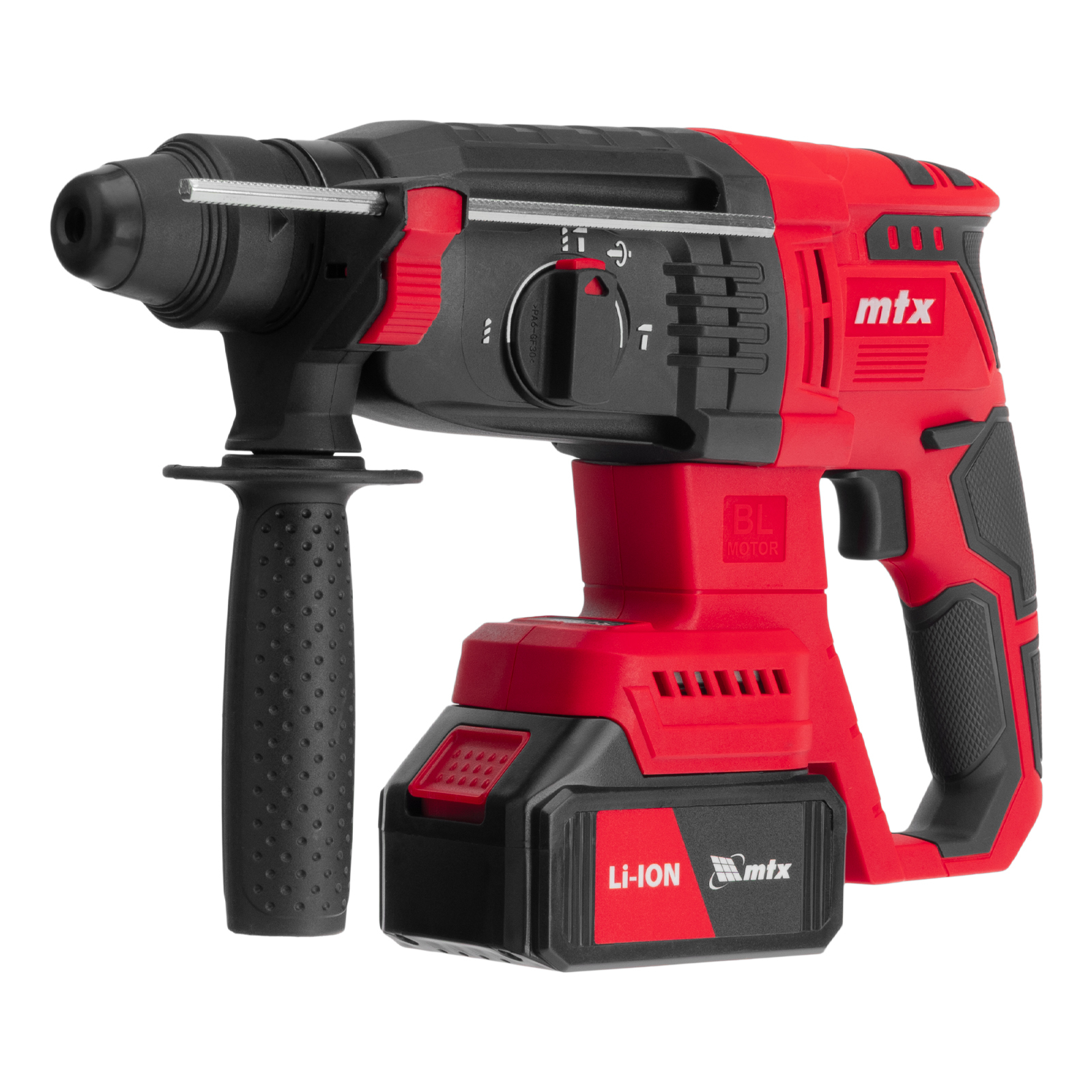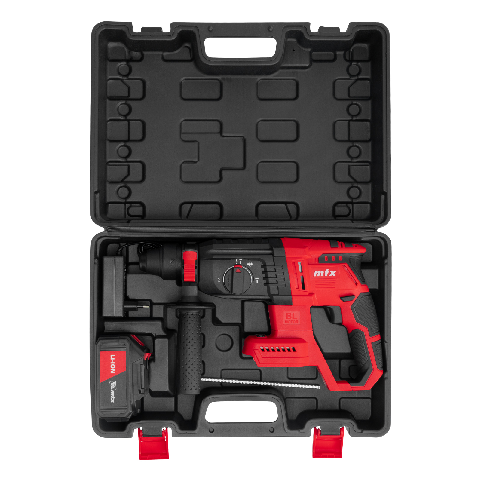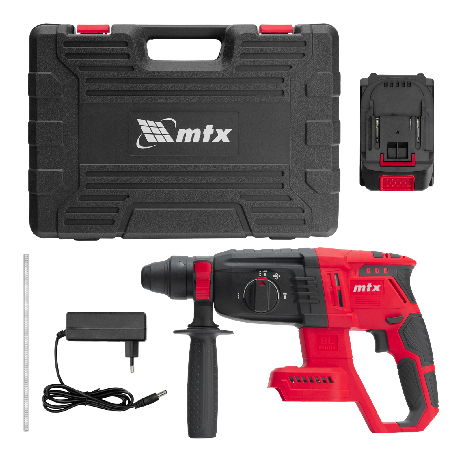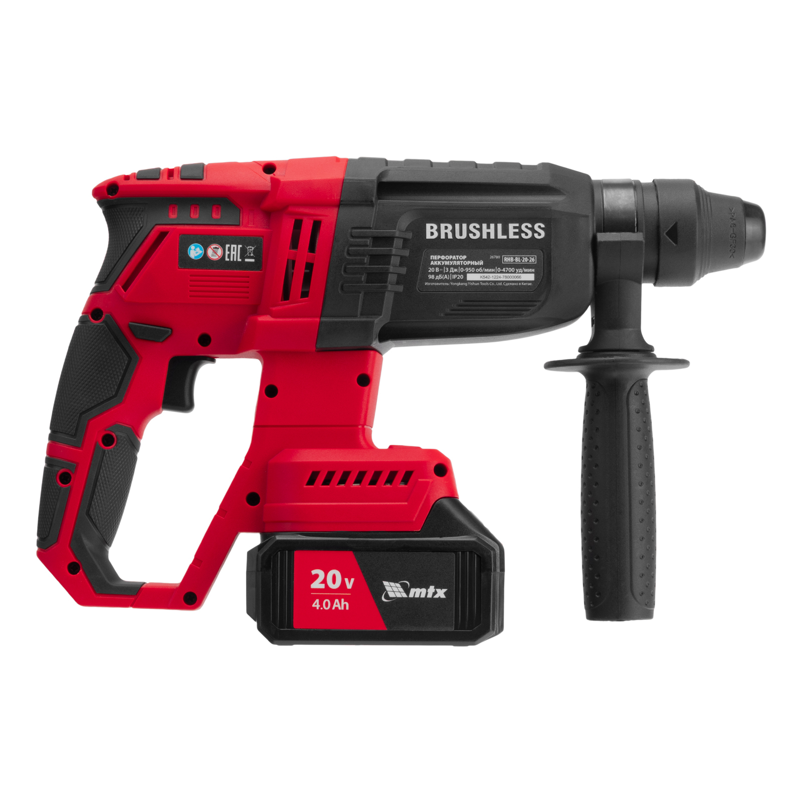 Аккумуляторный перфоратор MTX RHB-BL-20-26 26780 с бесщеточным двигателем работает от батареи Li-Ion 20 В и развивает энергию удара 3 Дж. Позволяет сверлить различные материалы, бурить отверстия, штробить и пробивать борозды в бетоне, камне, кирпиче, разрушать кирпичную кладку. Мощный бесщеточный двигатель устойчив к высоким нагрузкам и обеспечивает силу удара, достаточную для эффективной работы с материалами высокой твердости. Максимальный диаметр сверления в бетоне достигает 26 мм, древесине — 30 мм, металле — 10 мм. Патрон совместим с оснасткой SDS Plus, которая надежно фиксируется и не проворачивается во время работы. Перфоратор позволяет успешно решать большинство задач в быту.