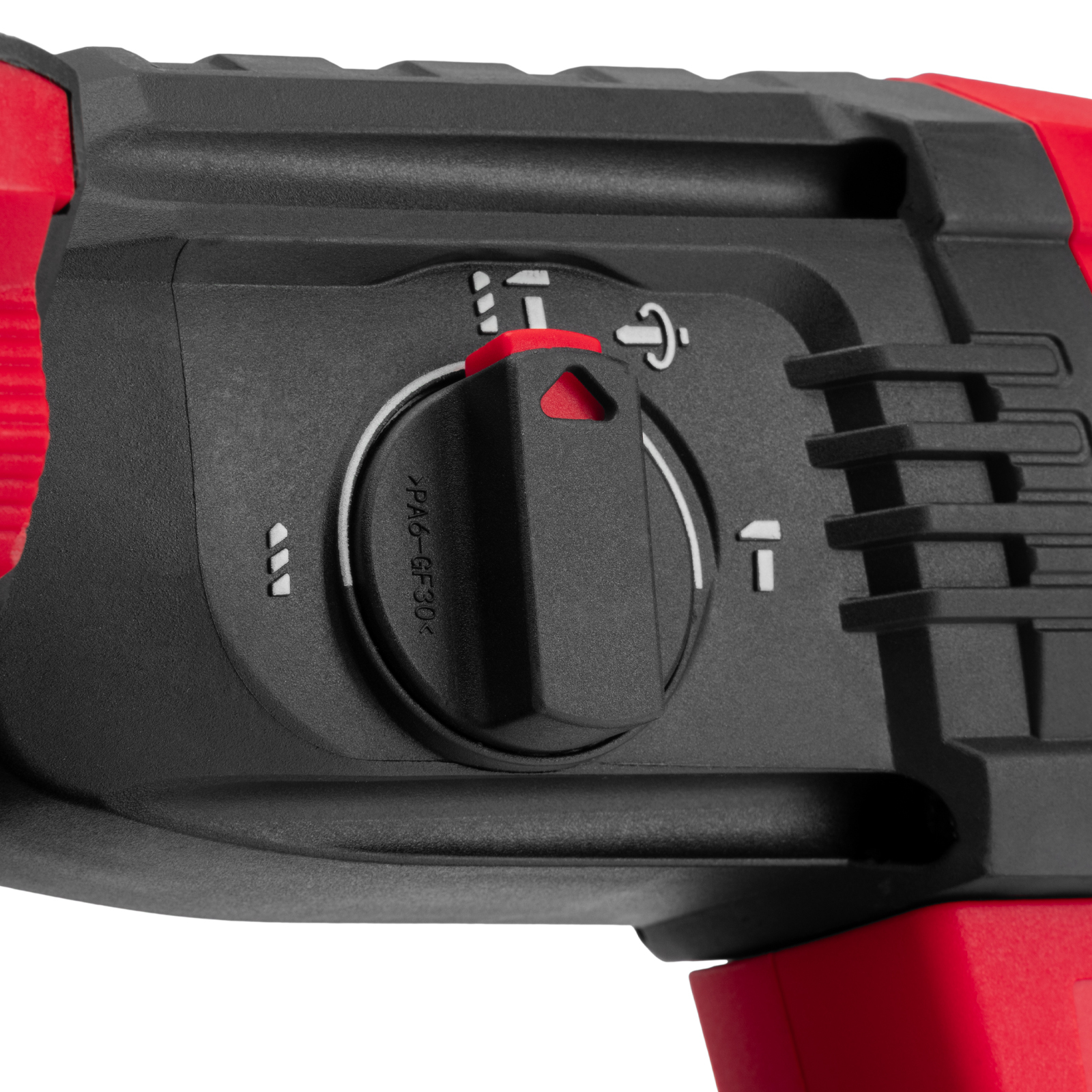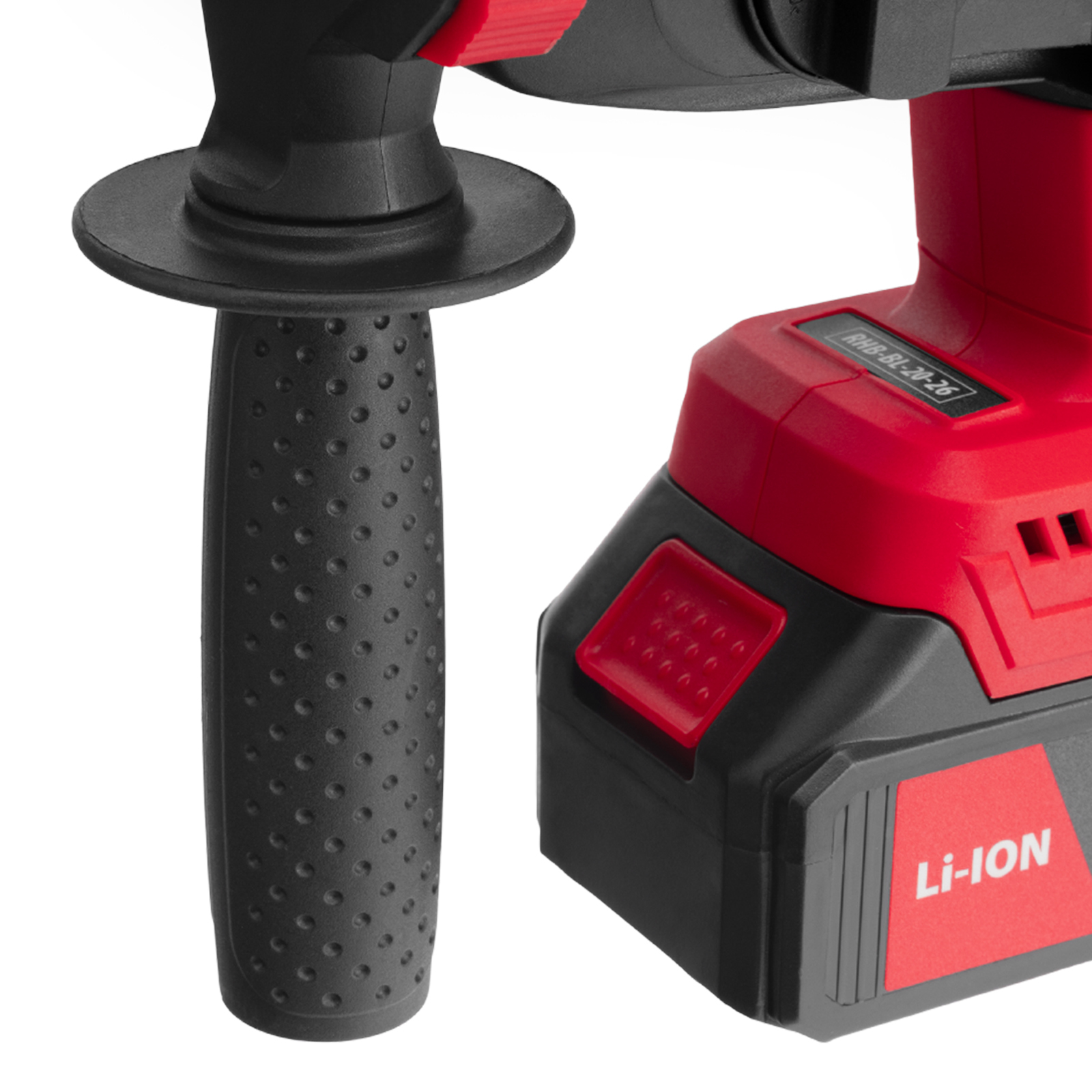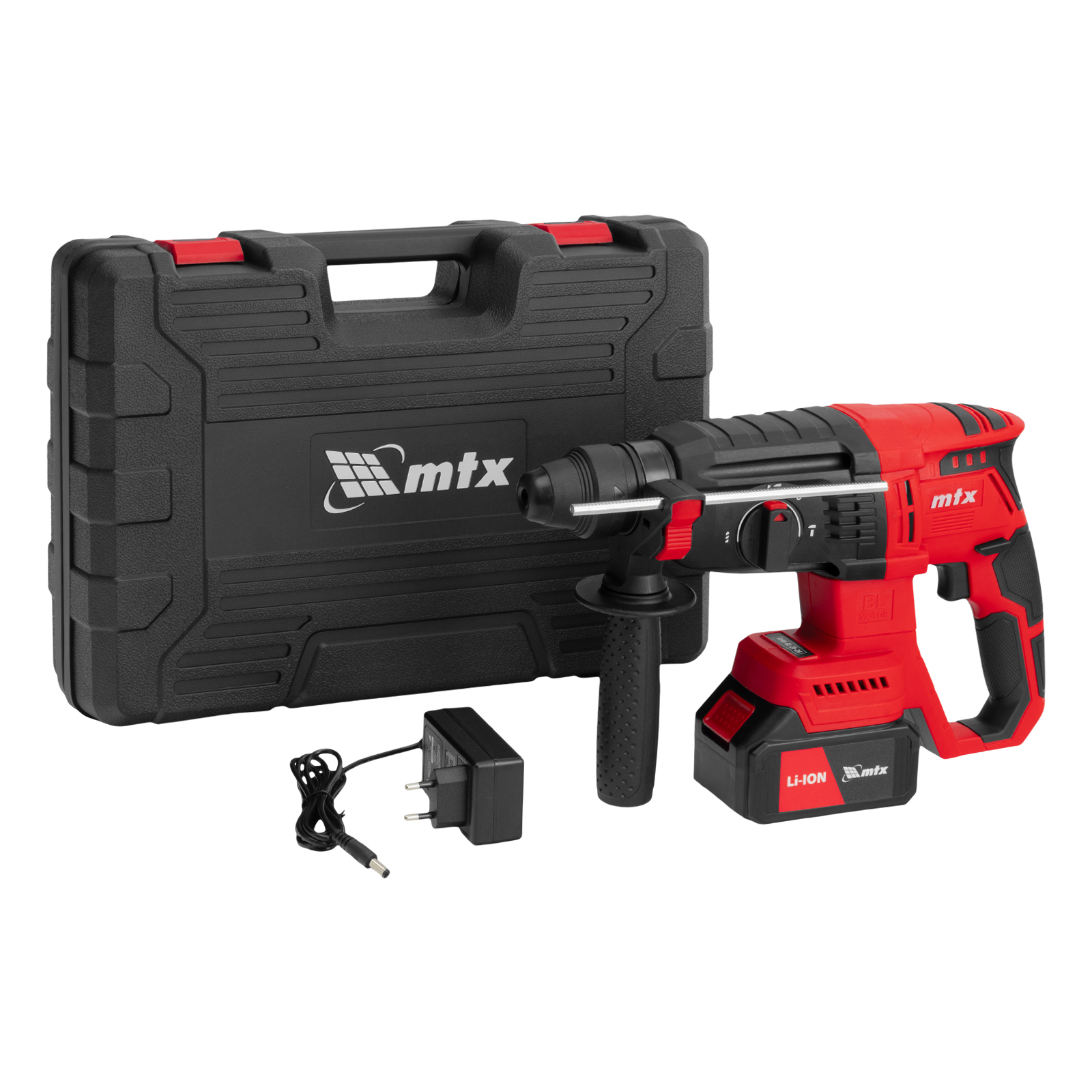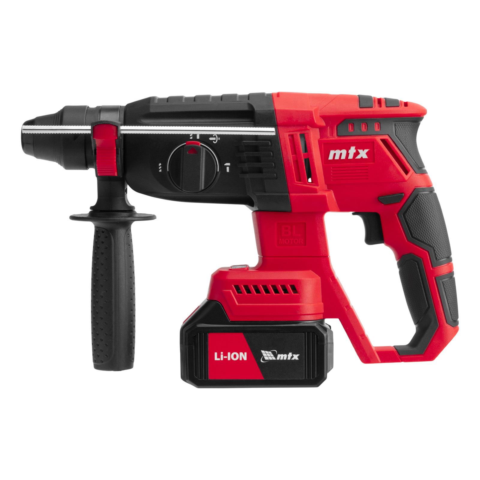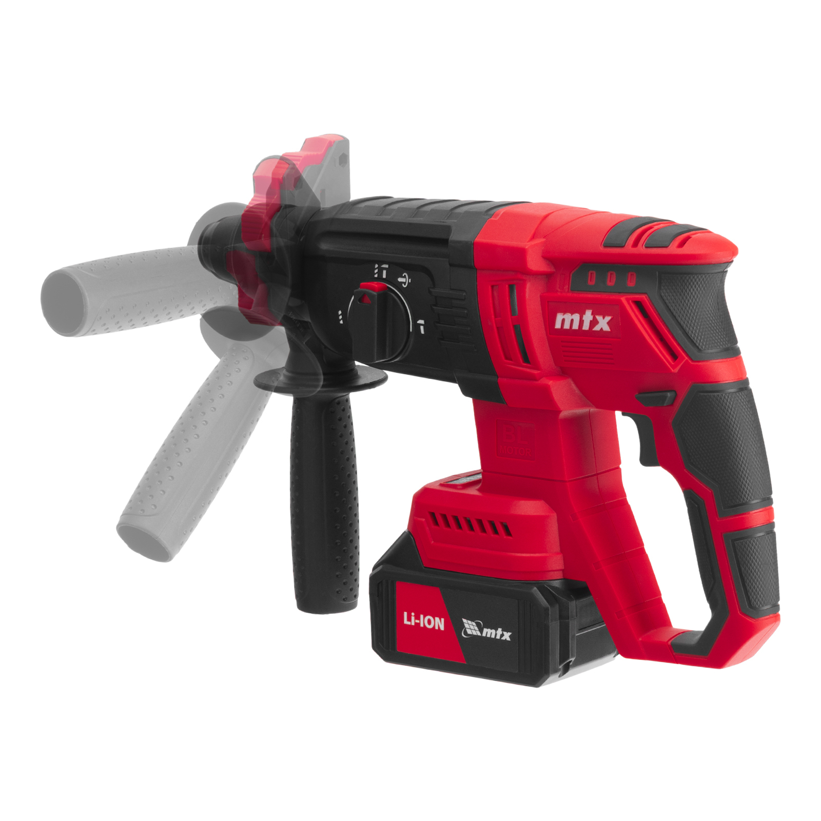 Аккумуляторный перфоратор MTX RHB-BL-20-26 26780 с бесщеточным двигателем работает от батареи Li-Ion 20 В и развивает энергию удара 3 Дж. Позволяет сверлить различные материалы, бурить отверстия, штробить и пробивать борозды в бетоне, камне, кирпиче, разрушать кирпичную кладку. Мощный бесщеточный двигатель устойчив к высоким нагрузкам и обеспечивает силу удара, достаточную для эффективной работы с материалами высокой твердости. Максимальный диаметр сверления в бетоне достигает 26 мм, древесине — 30 мм, металле — 10 мм. Патрон совместим с оснасткой SDS Plus, которая надежно фиксируется и не проворачивается во время работы. Перфоратор позволяет успешно решать большинство задач в быту.