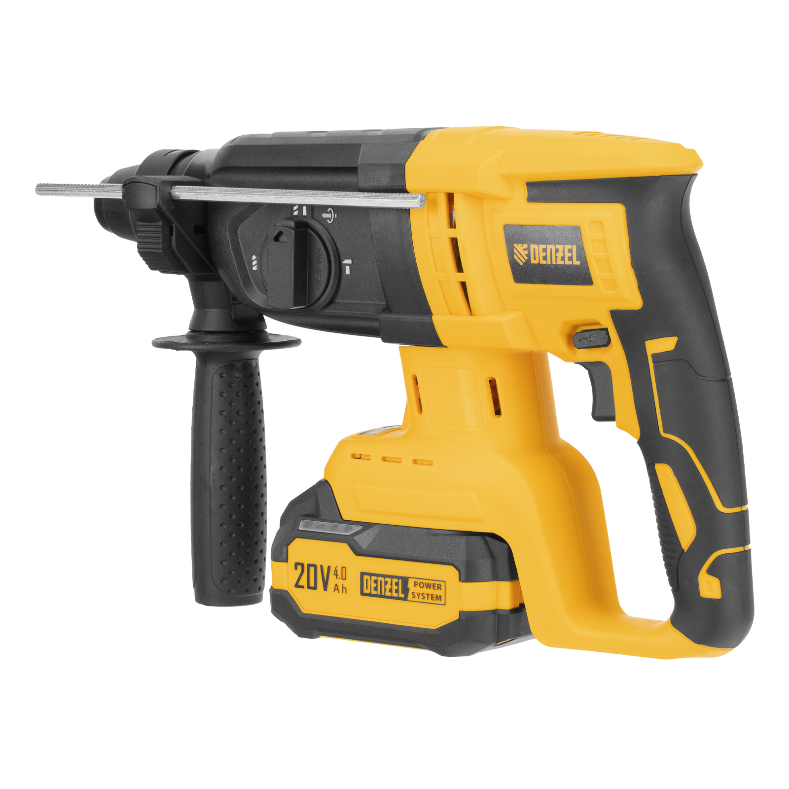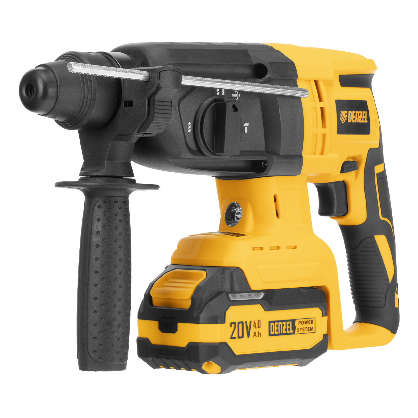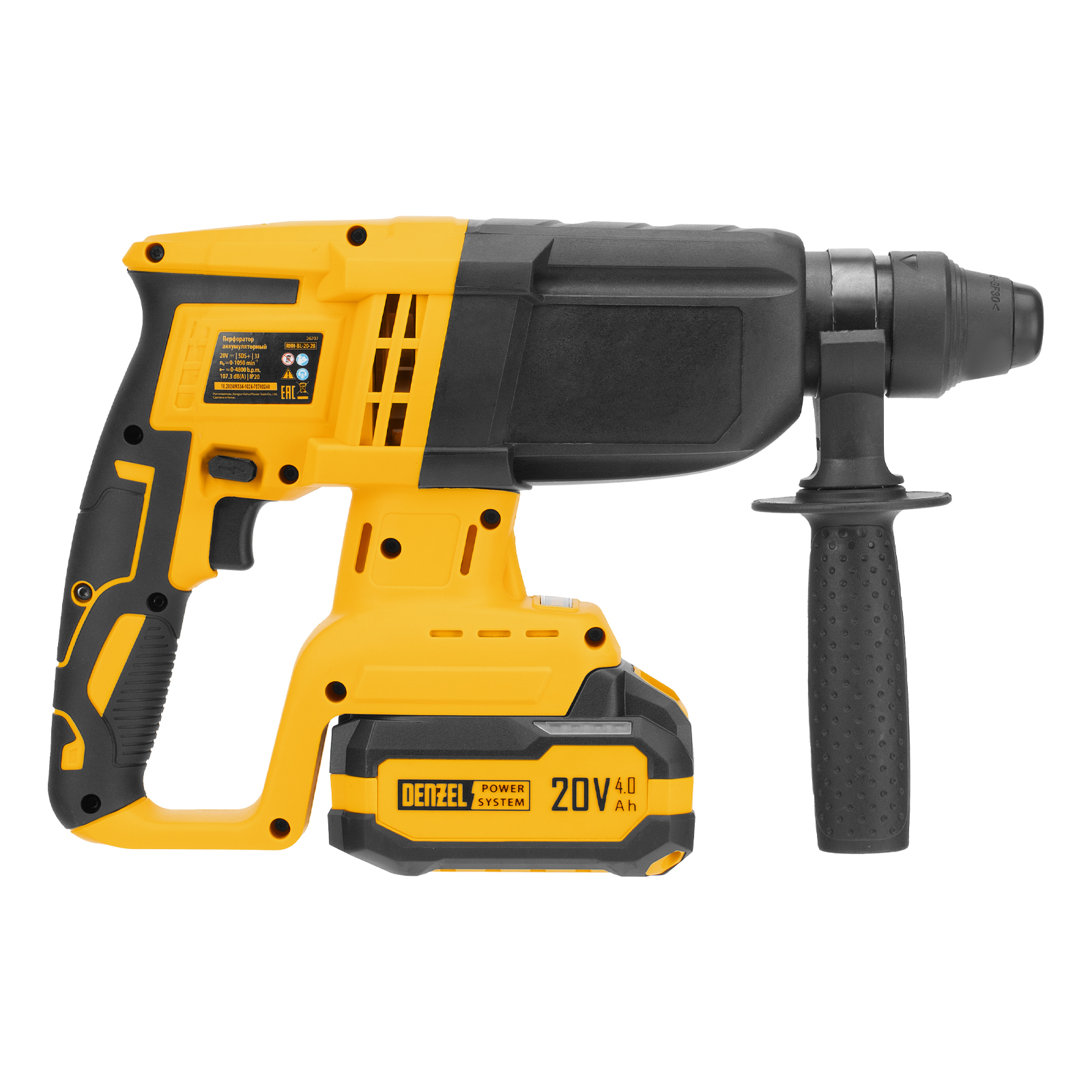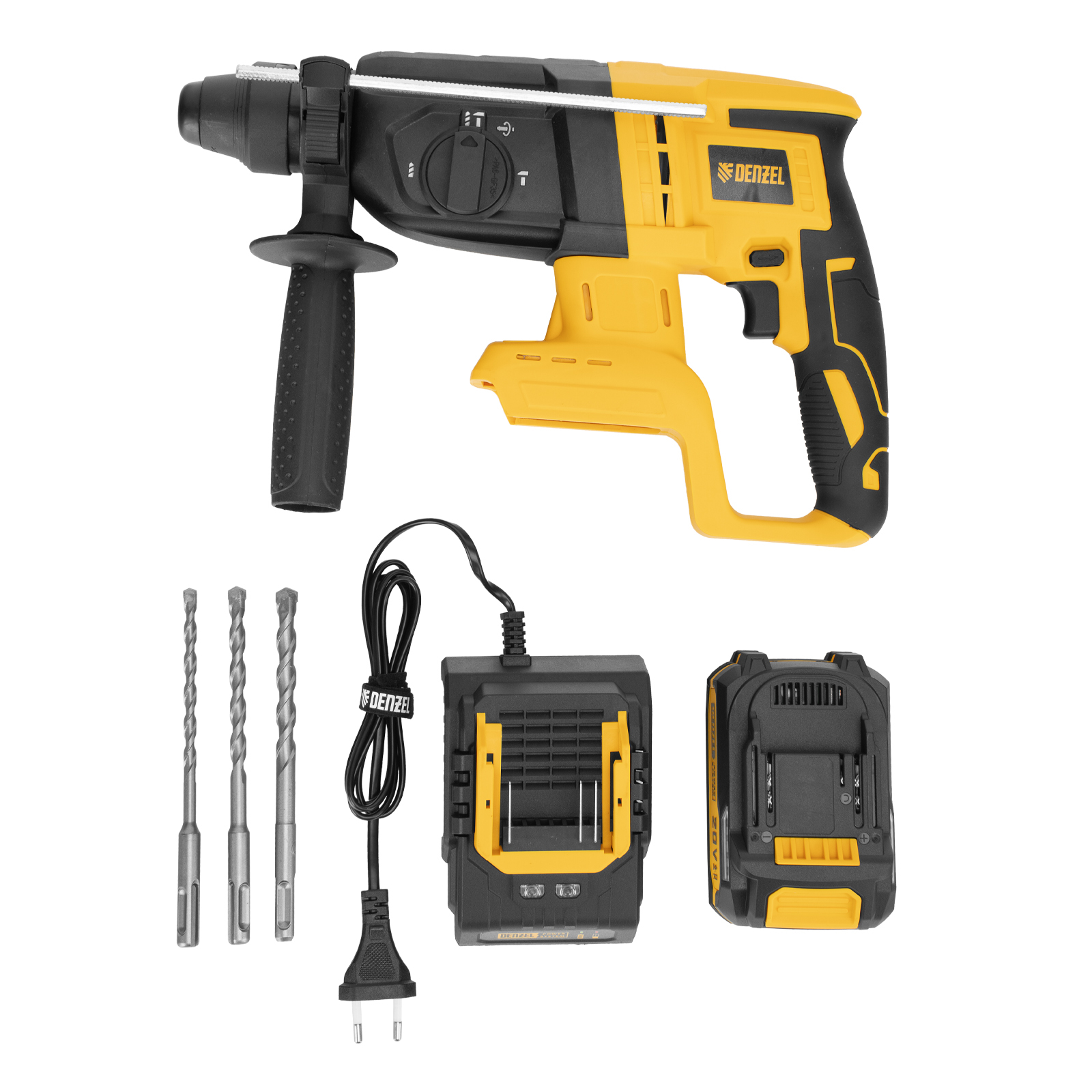 Аккумуляторный перфоратор Denzel RHH-BL-20-28 26707 используется для сверления и бурения отверстий в различных материалах, разрушения кирпичной кладки, штробления бетона, камня и кирпича. Максимальный диаметр отверстий в древесине составляет 40 мм, металле — 13 мм, бетоне — 28 мм. Можно выбрать один из трех режимов работы: долбление, сверление и сверление с ударом. Угловое положение долота регулируется для наиболее эффективной работы. Максимальная частота вращения составляет 1050 об/мин, ударов — 4800 уд/мин.