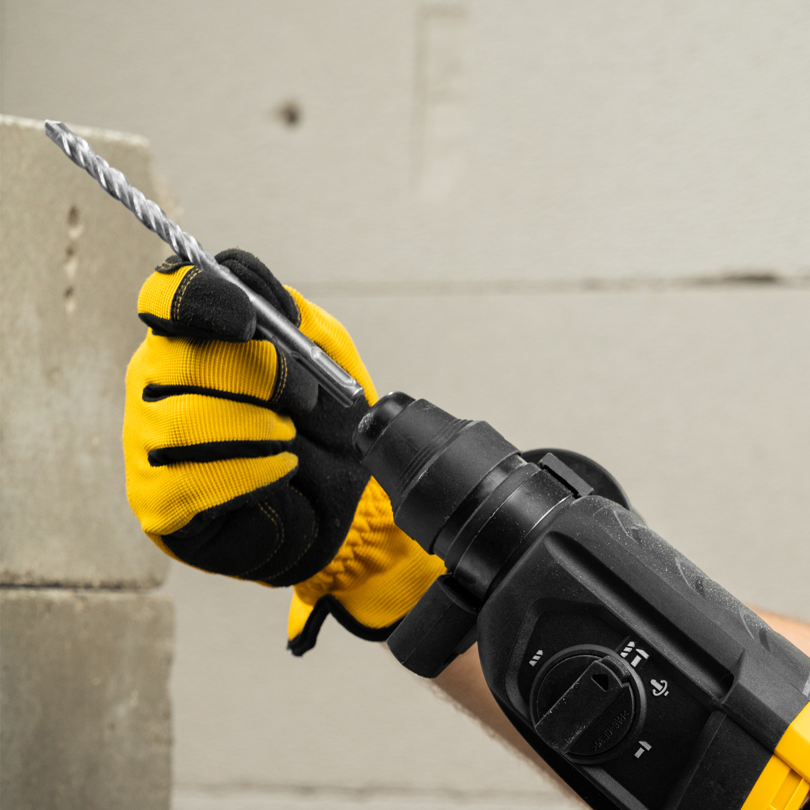 - Надежная фиксация оснастки — хвостовик SDS PLUS легко и быстро устанавливается в патрон перфоратора.