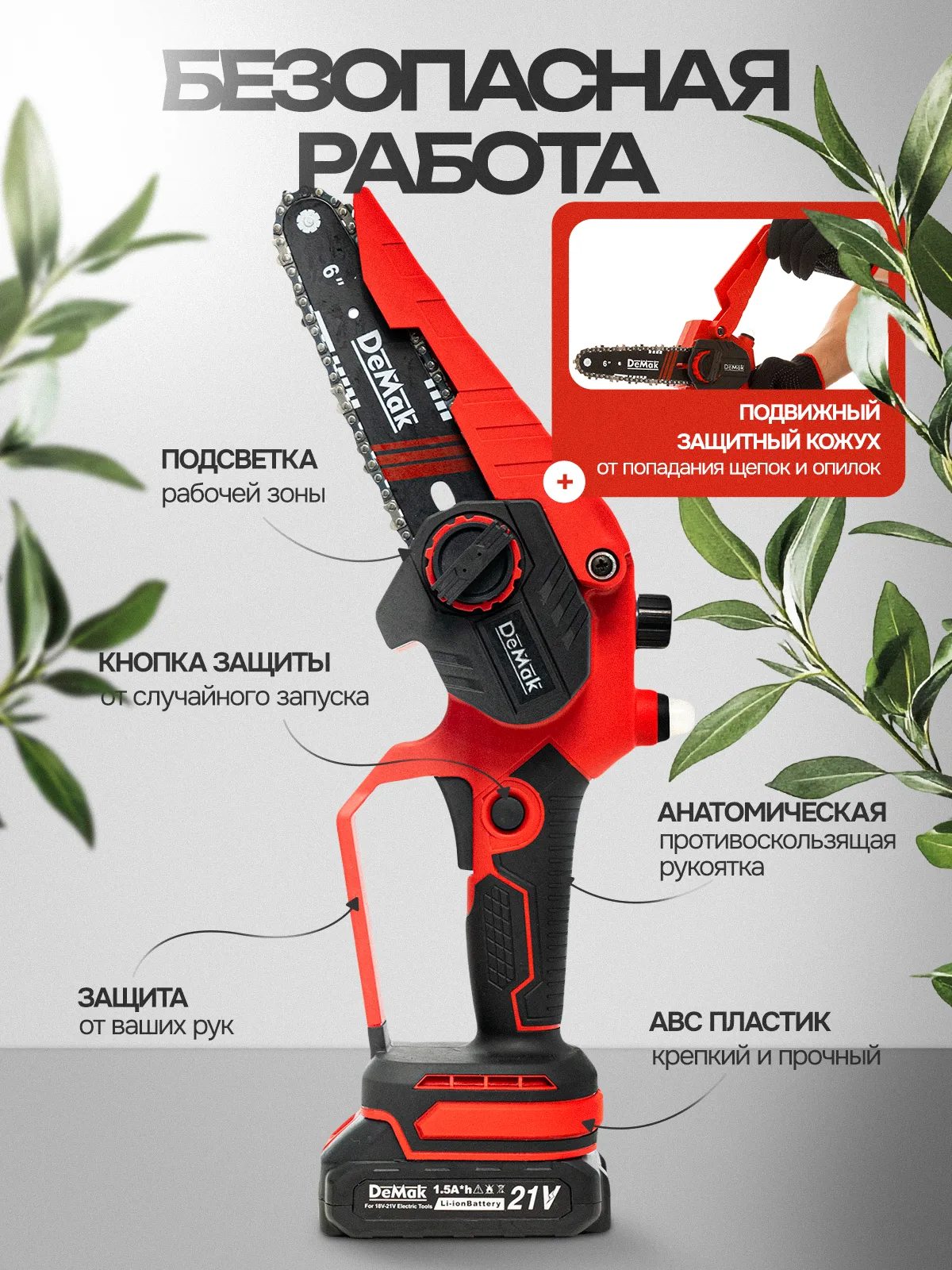 Мини-пила аккумуляторная цепная садовая 21V - это идеальный инструмент для тех, кто любит проводить время на природе или заниматься строительством и ремонтом. Пила аккумуляторная оснащена мощной цепью, которая позволяет быстро и эффективно обрезать деревья, кустарники и другие растения. Цепная пила имеет компактный размер и легкий вес, что делает ее удобной для использования в любом месте. Она также оснащена аккумулятором, который обеспечивает длительную работу без необходимости частой подзарядки. Пила аккумуляторная цепная является отличным выбором для тех, кто хочет получить максимальную производительность и комфорт при работе с деревьями и другими растениями. Сучкорез будет полезен как профессионалам, так и любителям, которые хотят улучшить свои навыки работы с инструментами.