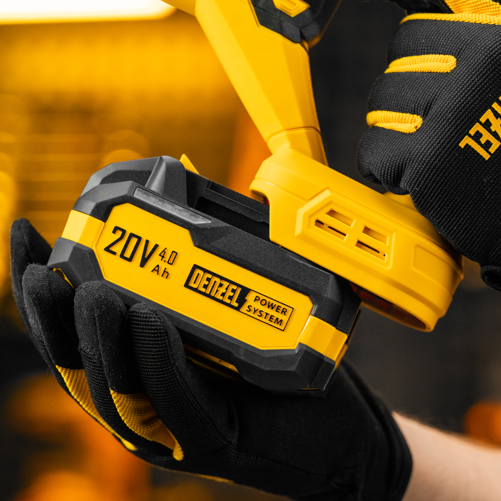- Универсальность — аккумулятор совместим со всеми инструментами единой платформы Denzel Power System 20V.