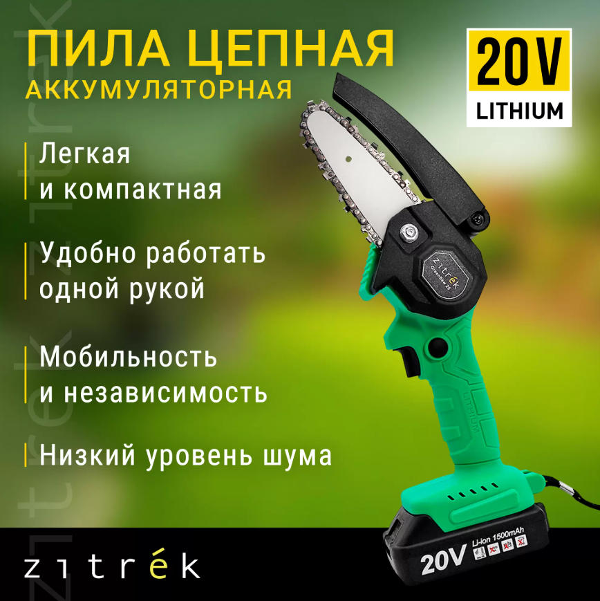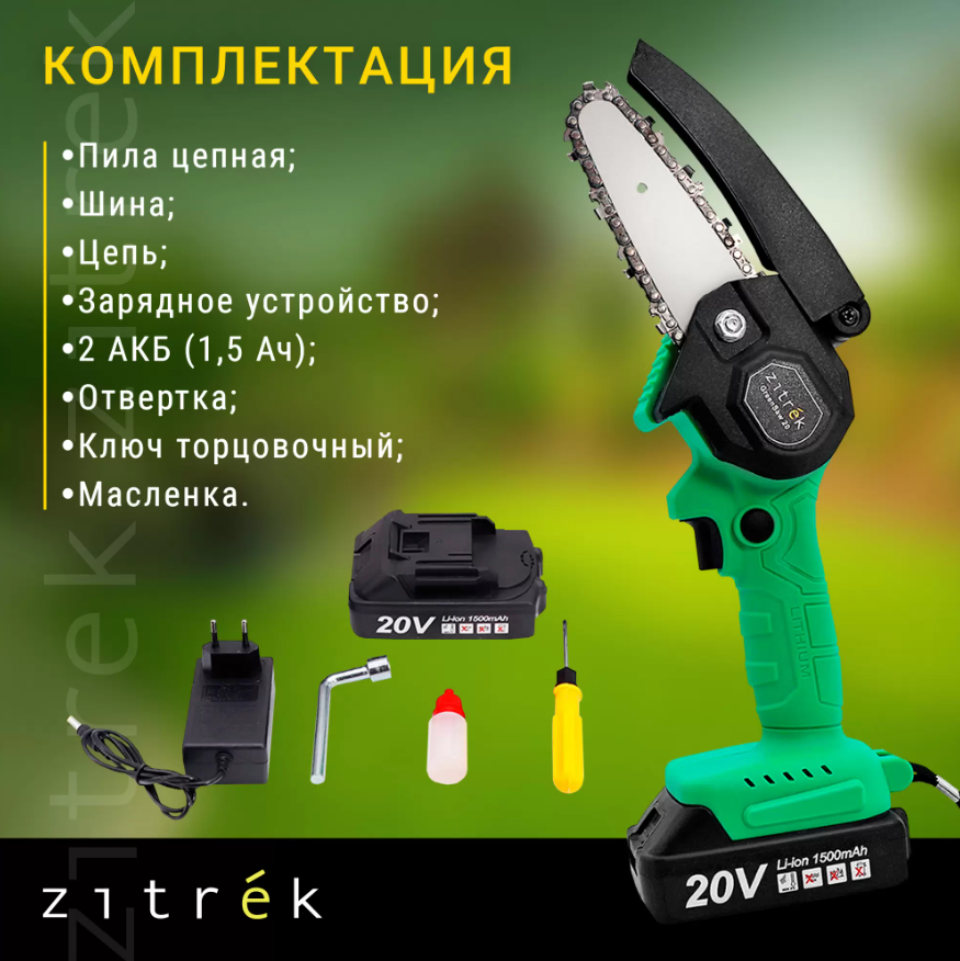 Цепная аккумуляторная пила, Шина,Цепь, Зарядное устройство, АКБ - 2шт, Отвертка, Гаечный ключ