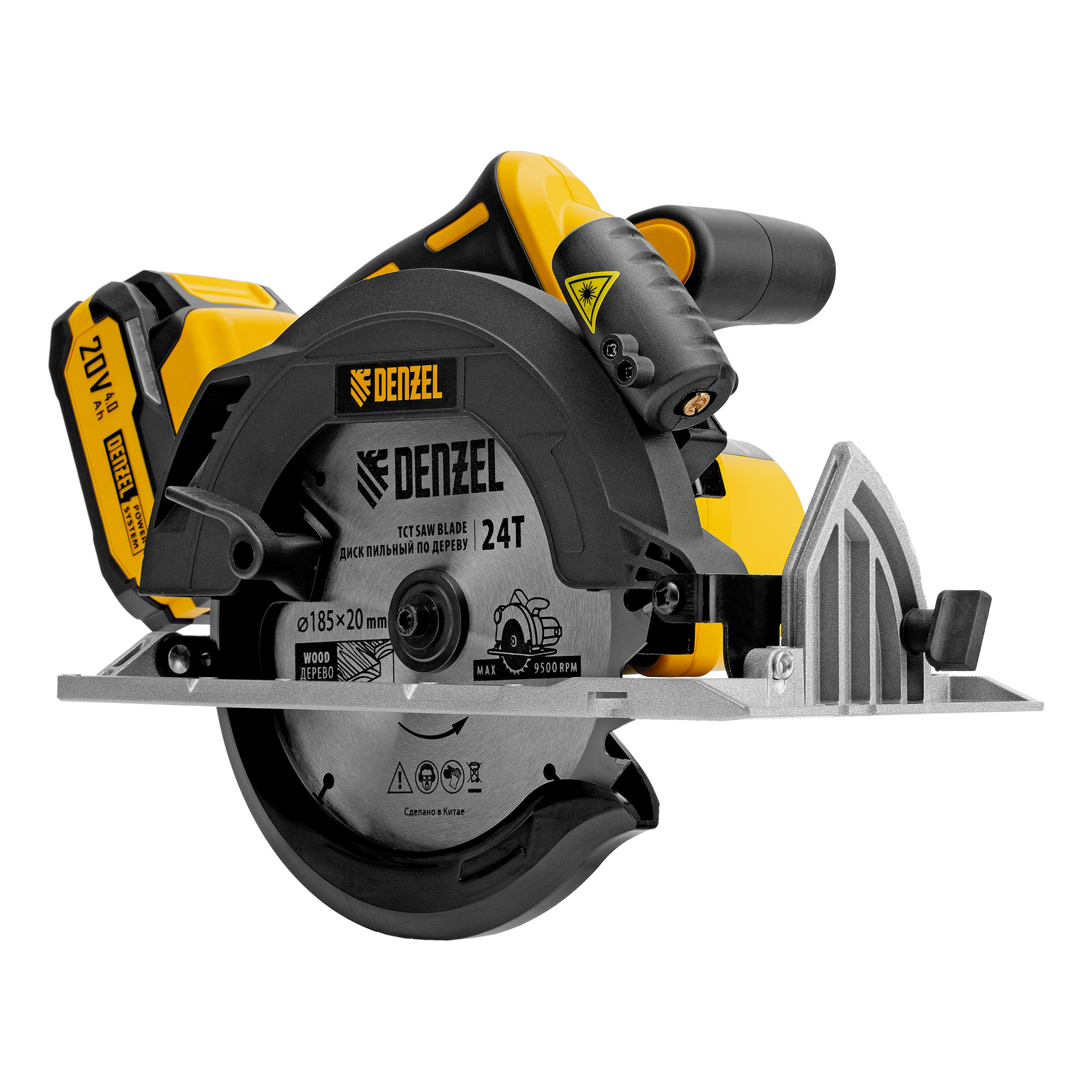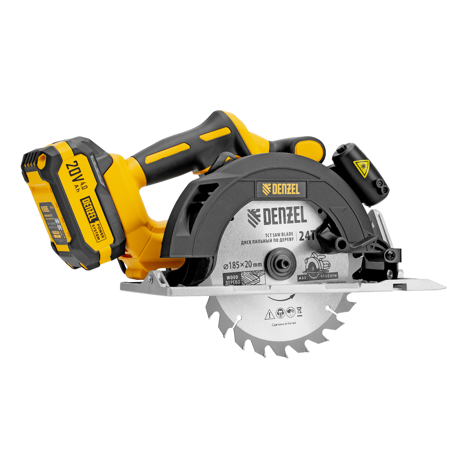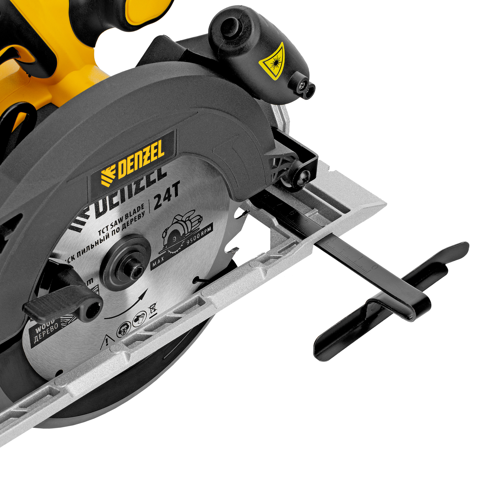Циркулярная аккумуляторная пила Denzel CCSH-BL-20-185 27409 с бесщеточным двигателем работает от источника питания Li-Ion 20 В и предназначена для распиливания древесины при помощи пильных дисков диаметром 185 мм. При использовании специальной оснастки может использоваться также для работы с алюминиевыми заготовками. Надежный бесщеточный двигатель поддерживает частоту вращения шпинделя 4000 об/мин и обеспечивает стабильно высокую производительность в течение всего срока службы инструмента. Двигатель не требует сложного обслуживания, что упрощает уход за пилой. Максимальная глубина пропила под углом 90° составляет 65 мм, под углом 45° — 45 мм. Циркулярная пила рекомендована для решения различных задач в быту.