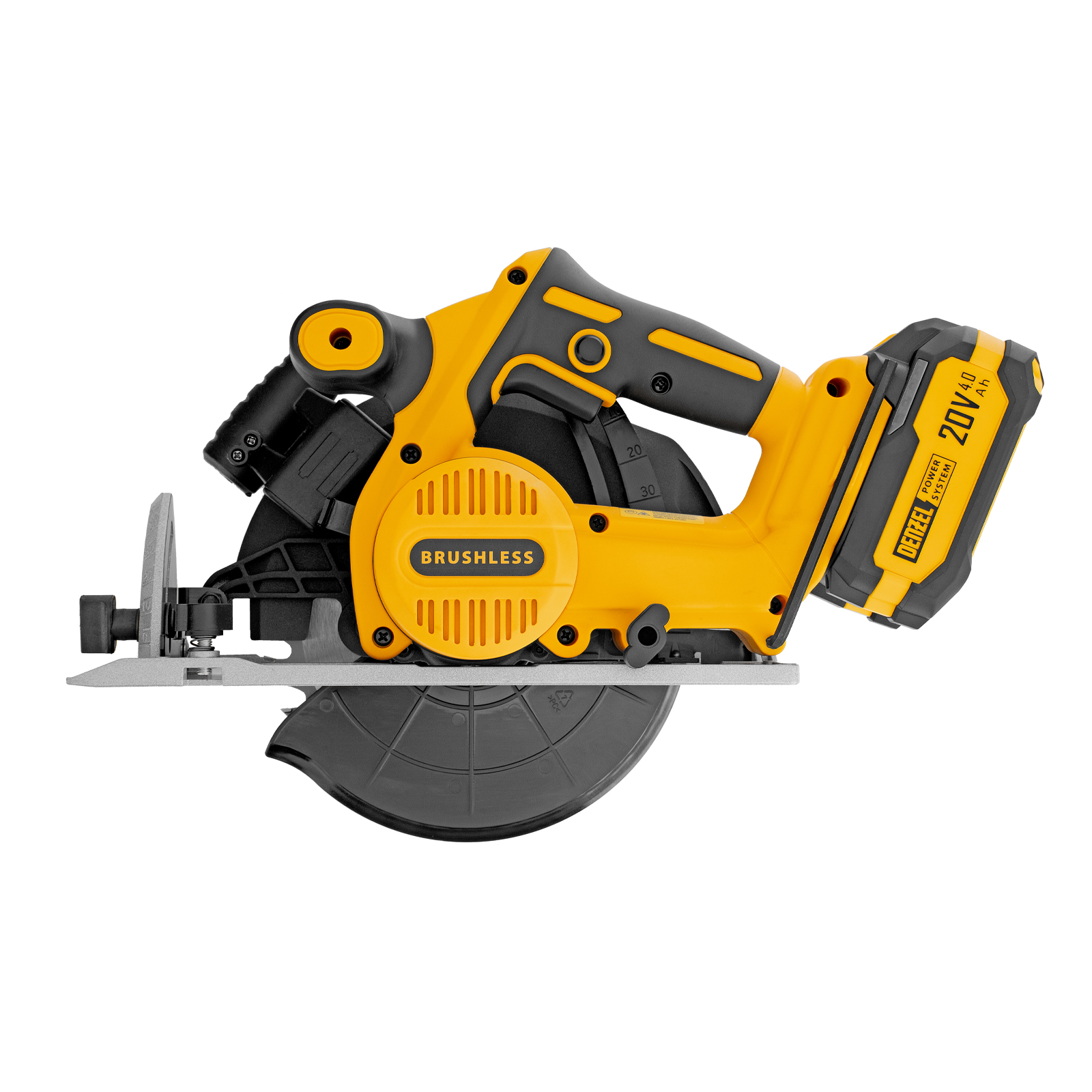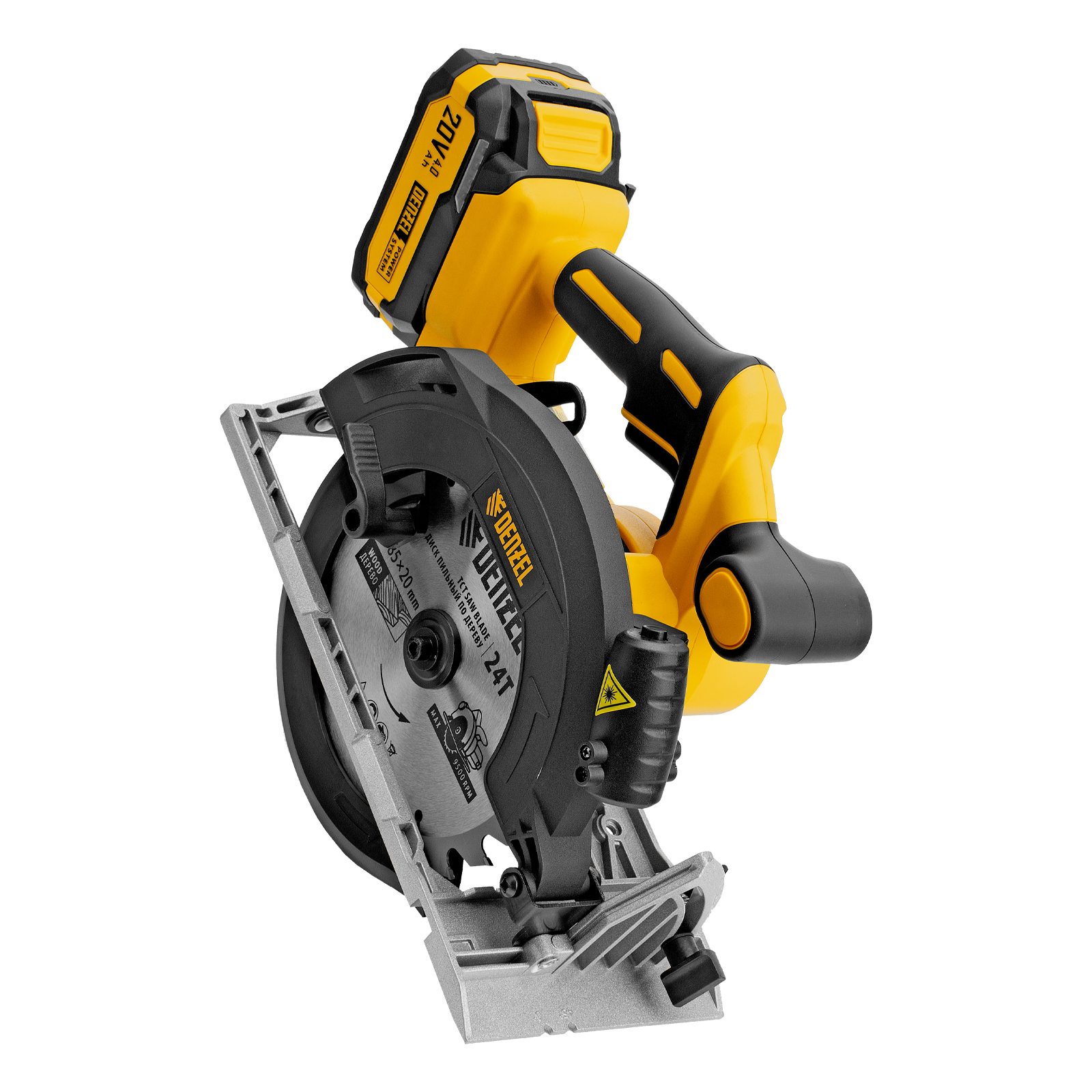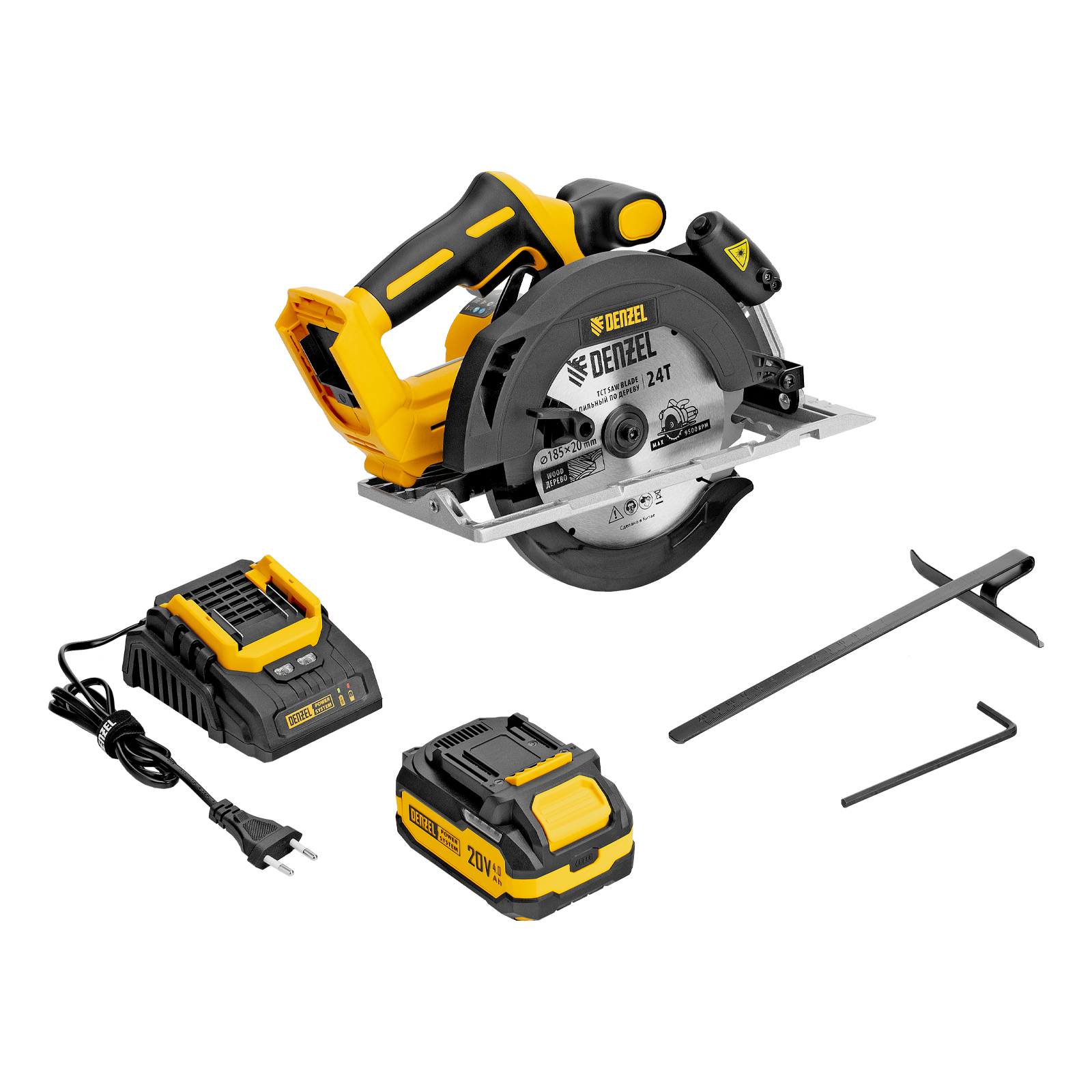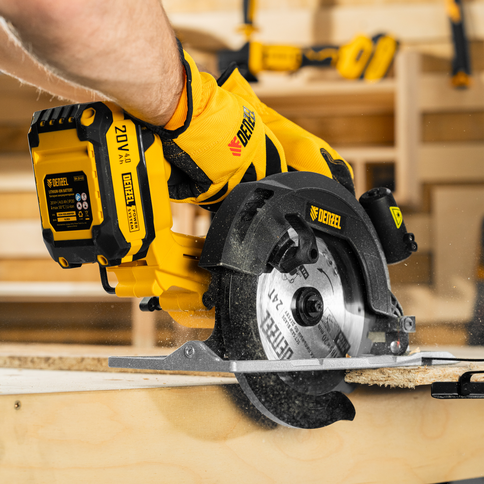 Циркулярная аккумуляторная пила Denzel CCSH-BL-20-185 27409 с бесщеточным двигателем работает от источника питания Li-Ion 20 В и предназначена для распиливания древесины при помощи пильных дисков диаметром 185 мм. При использовании специальной оснастки может использоваться также для работы с алюминиевыми заготовками. Надежный бесщеточный двигатель поддерживает частоту вращения шпинделя 4000 об/мин и обеспечивает стабильно высокую производительность в течение всего срока службы инструмента. Двигатель не требует сложного обслуживания, что упрощает уход за пилой. Максимальная глубина пропила под углом 90° составляет 65 мм, под углом 45° — 45 мм. Циркулярная пила рекомендована для решения различных задач в быту.